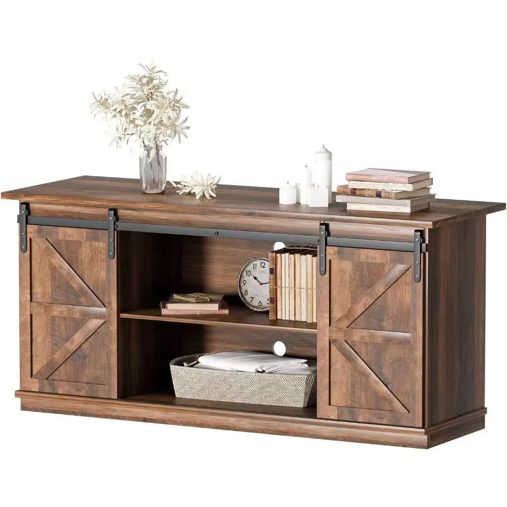 TV Stand for 65 Inch TVs with Sliding Barn Doors and Storage Cabinets