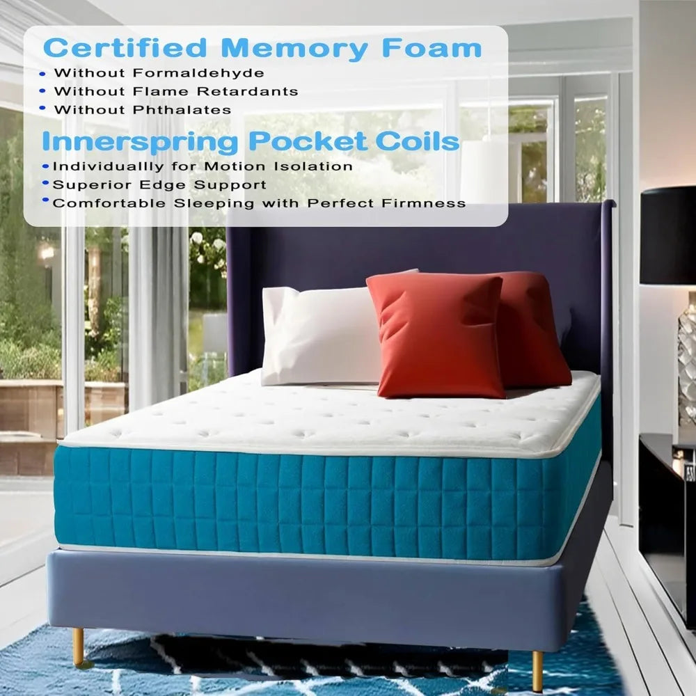 Transform your sleep with the Ljustra Twin Mattress, designed for ultimate comfort and support. Our 10-inch hybrid mattress combines advanced gel memory foam with individually pocketed innerspring coils, ensuring a restful night's sleep.