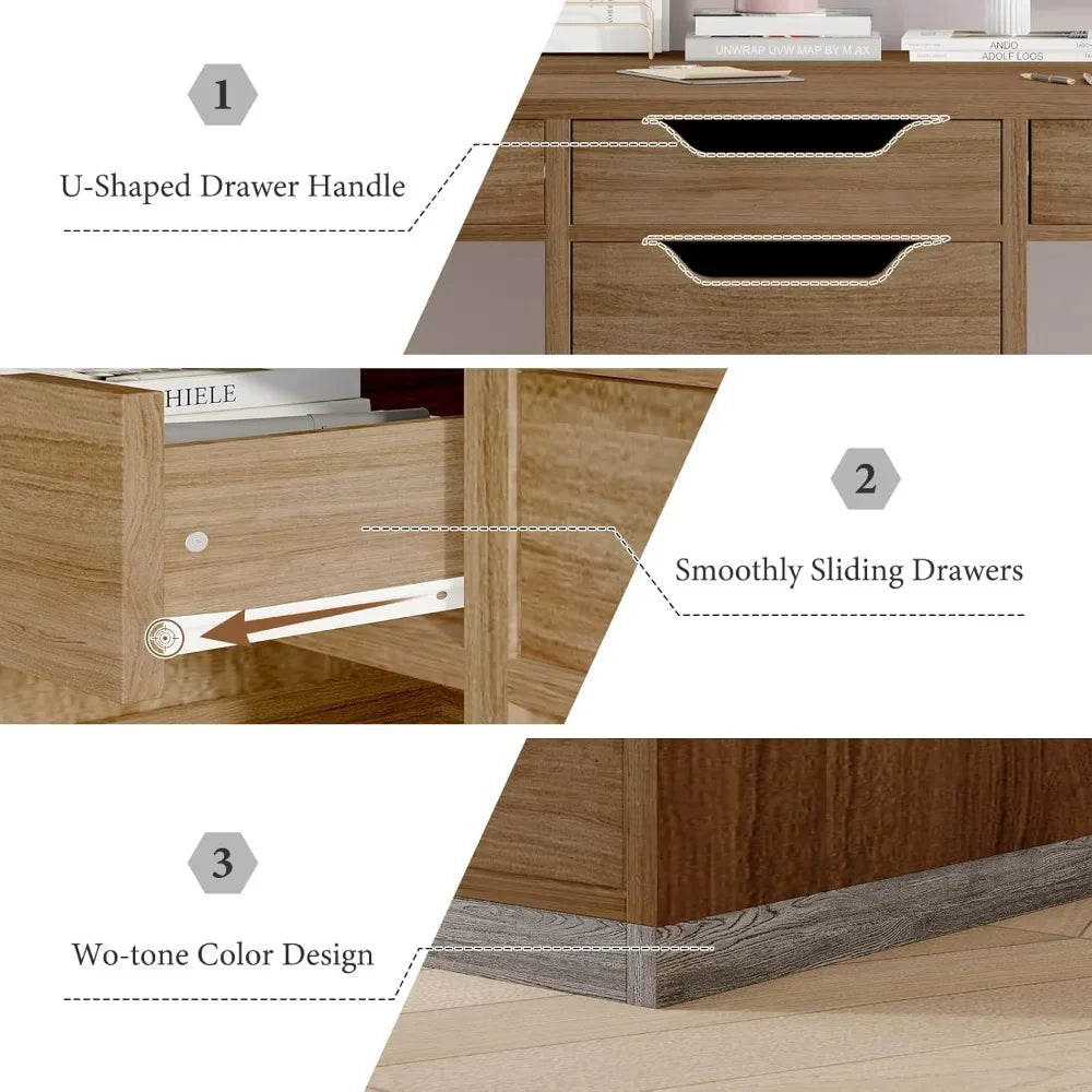 Two Person Desk with 5 Drawers Extra Long Computer Workstation