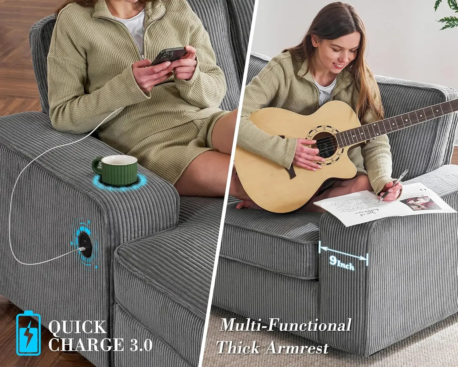 - Multi-Functional Armrest: Enjoy built-in USB charging ports and integrated cup holders for maximum convenience.