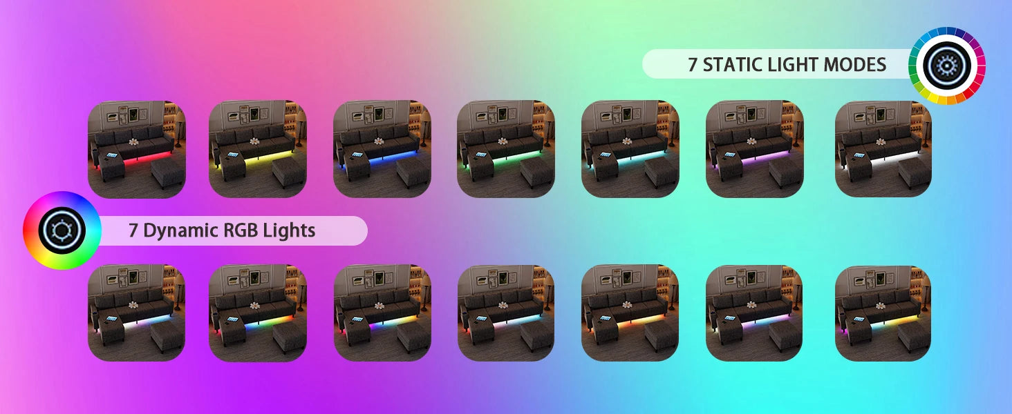- Smart Module: Equipped with RGB LED light strips with dynamic modes, plus a wireless charging station with USB and Type-C ports for charging your devices while you relax.