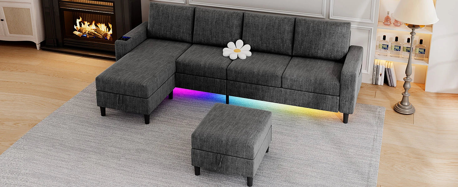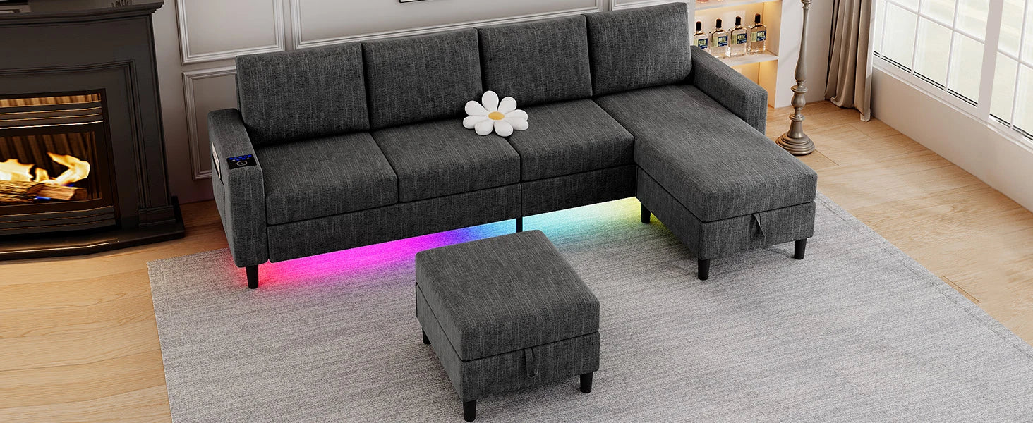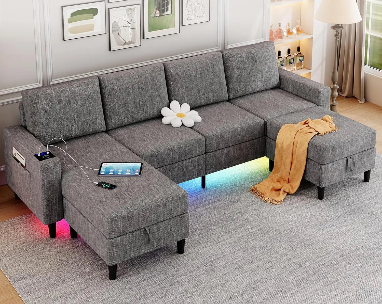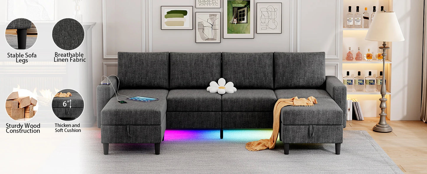 Experience the perfect blend of modern style and functionality with our Ljustra U Shaped Sectional Sofa. This 4-seat linen sectional couch is designed for comfort and convenience, making it an ideal addition to your living room, office, or apartment.