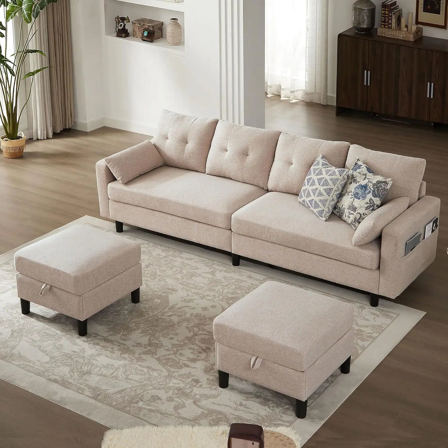 - Unique Design: Our 4-seat sectional couch is the perfect centerpiece for your dream living room. It's spacious enough for 4-5 people, with a weight capacity of up to 1000lbs.