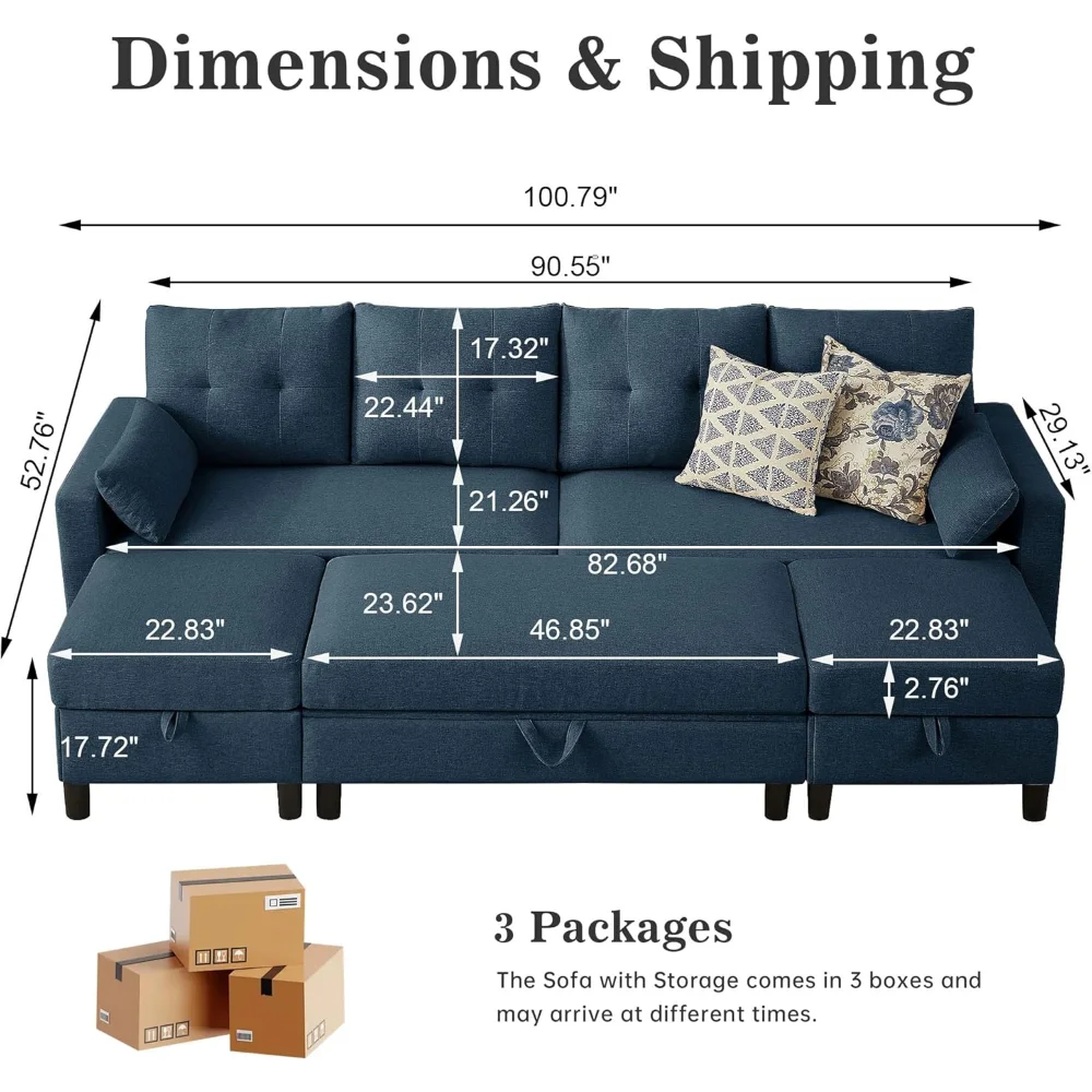 - Easy Assembly: This sectional couch is simple to assemble and disassemble. It comes in 3 packages, which may be delivered at different times.