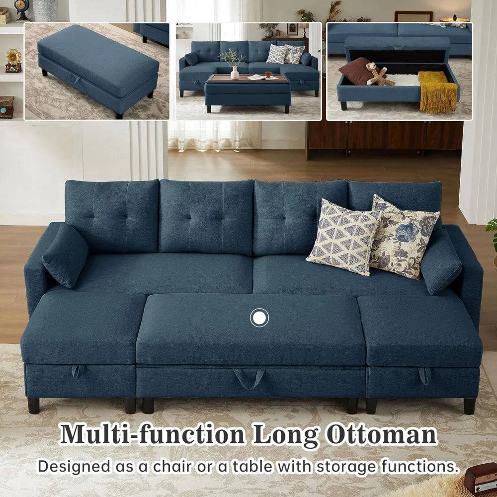 Modern U-Shaped Sectional Sofa with Ottoman Storage for Living Room