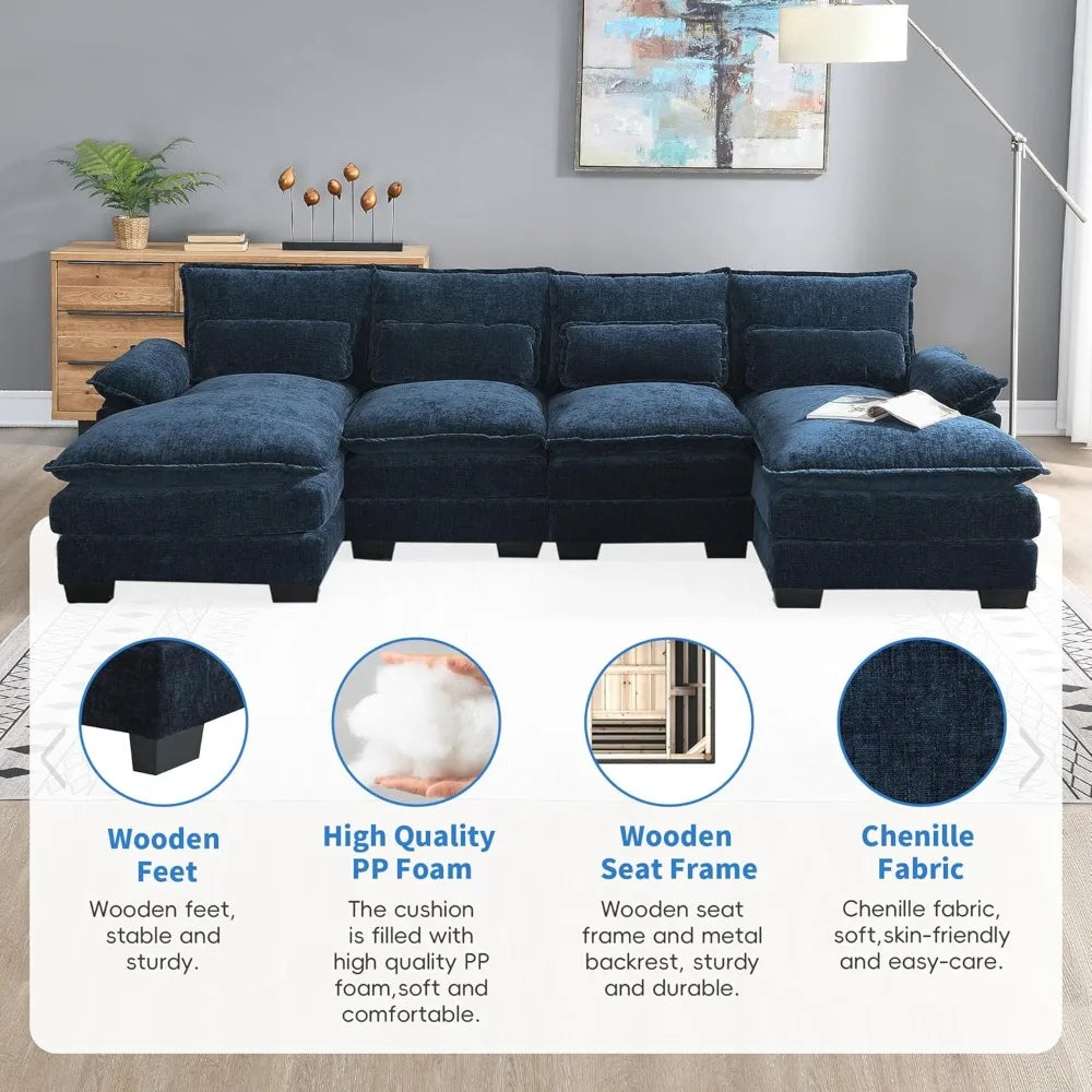 Luxury Modern U Shaped Sofa 110 Inch 4 Seater Sectional Couch