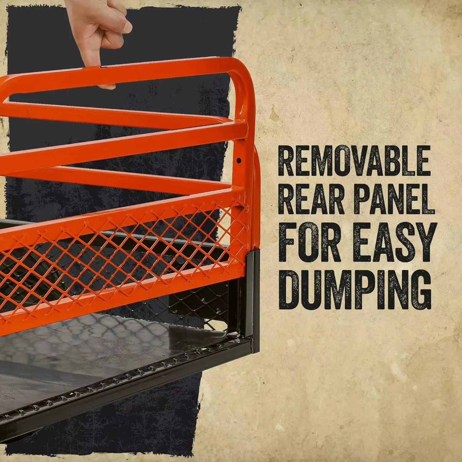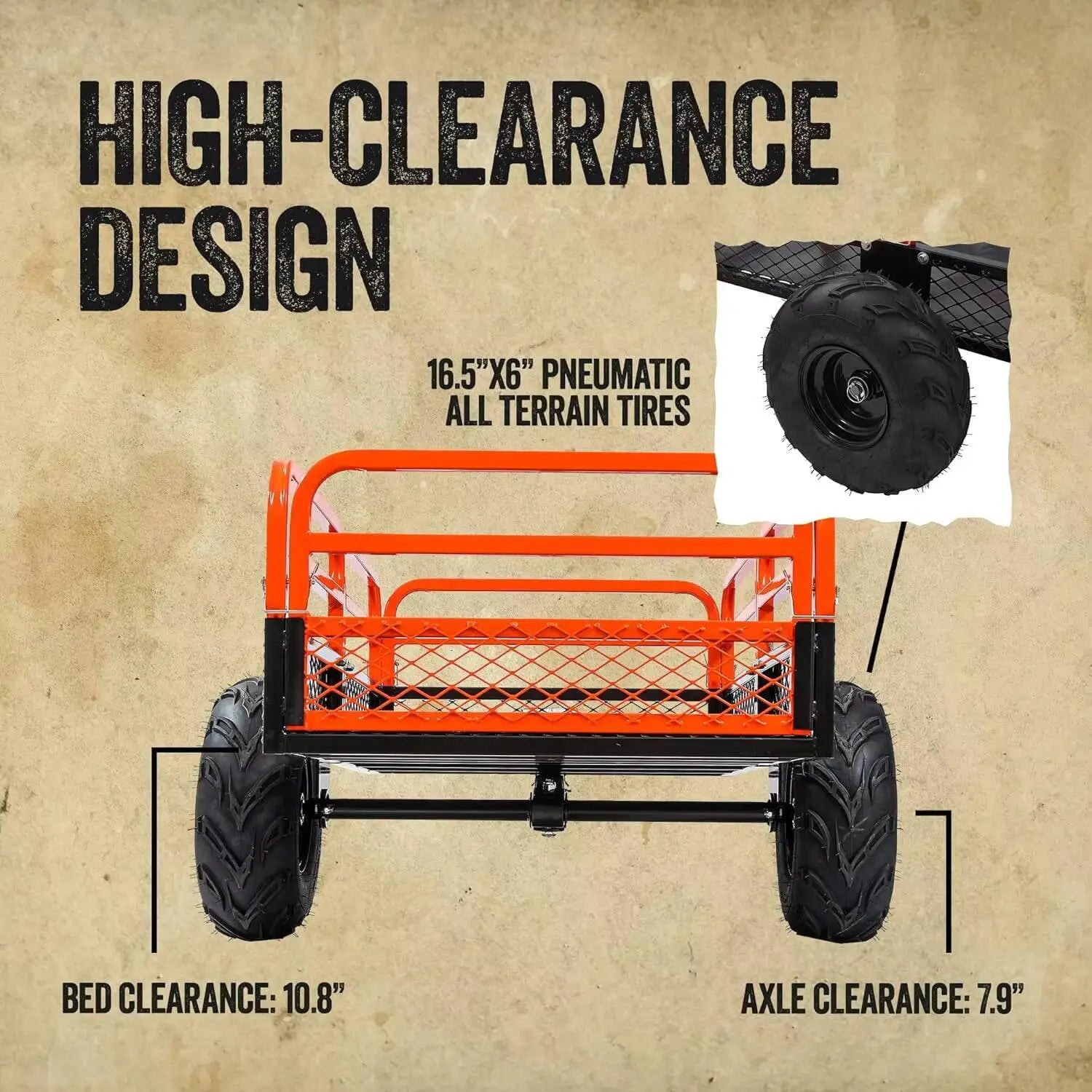 - All Terrain Use: Featuring 10.8 inches of bed clearance and 16.5” x 6” tires, this cart is suited for diverse terrains, ensuring smooth navigation over rocks, mud, and more.