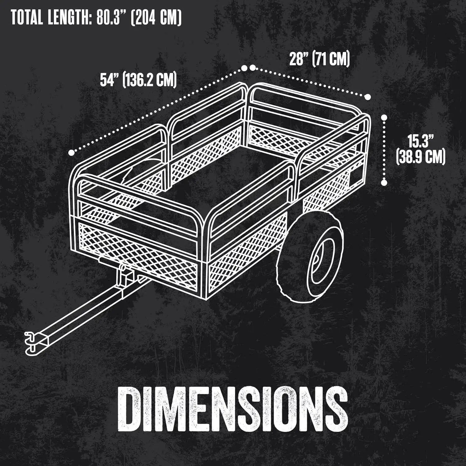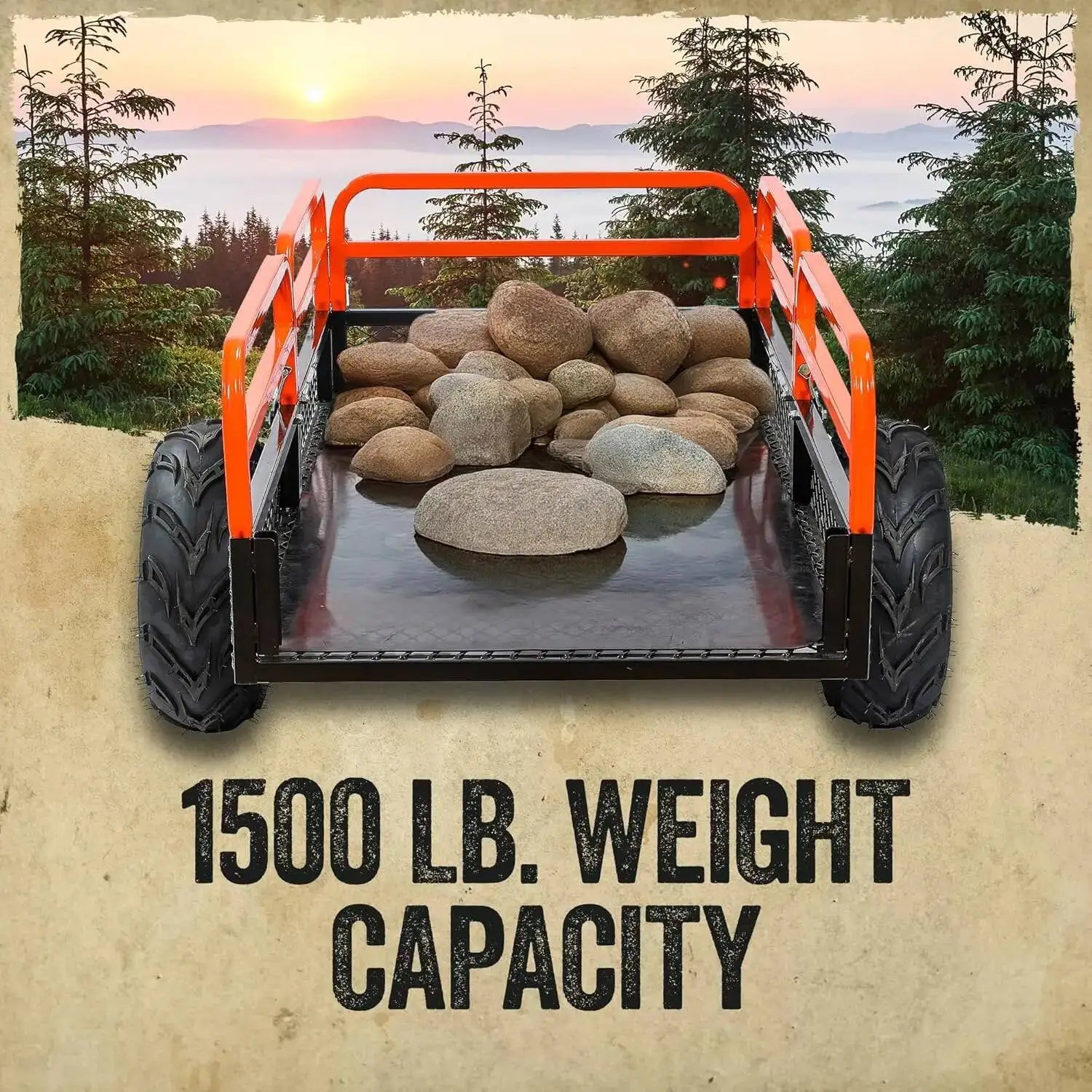 - 1500 LB / 15 CU FT Capacity: With a robust 15 cubic foot bed and a weight capacity of up to 1500 pounds, this trailer is designed to handle all your hauling needs, from firewood to garden debris.