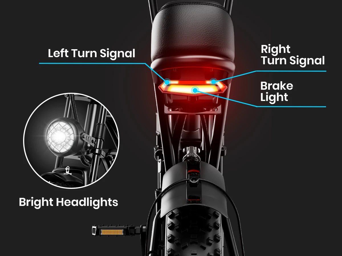 - Superior Stability: Featuring robust 20" x 4" fat tires for unparalleled traction and stability on sandy, rocky, or urban terrains.