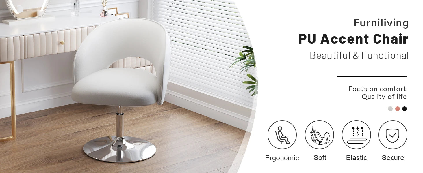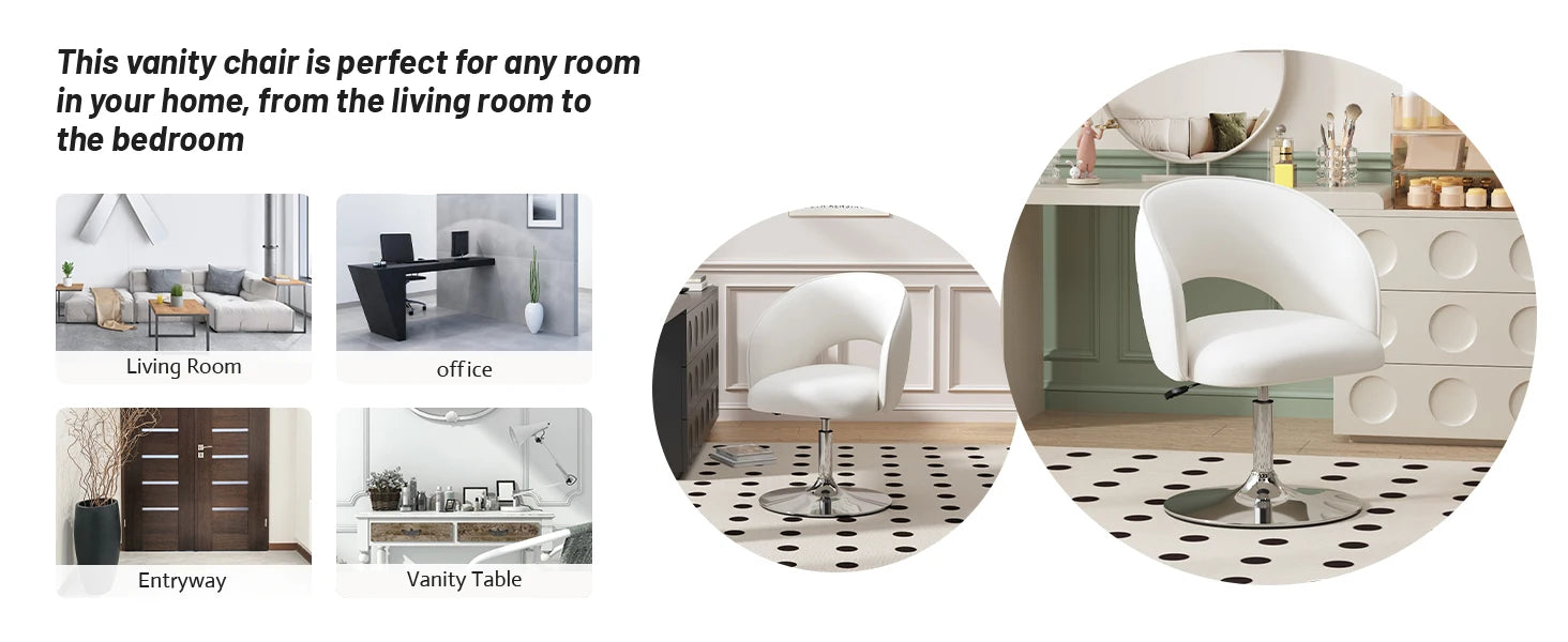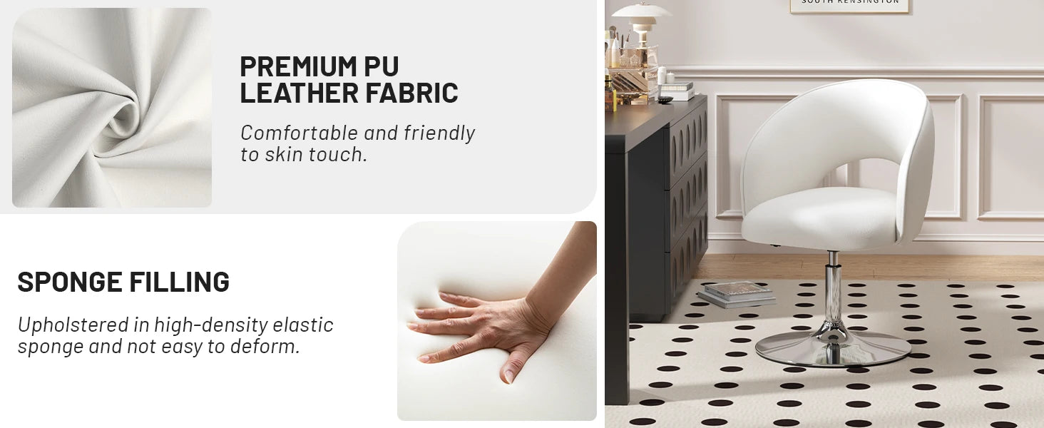 Vanity Chair PU Leather Swivel Accent Chair Adjustable Height Makeup Chair