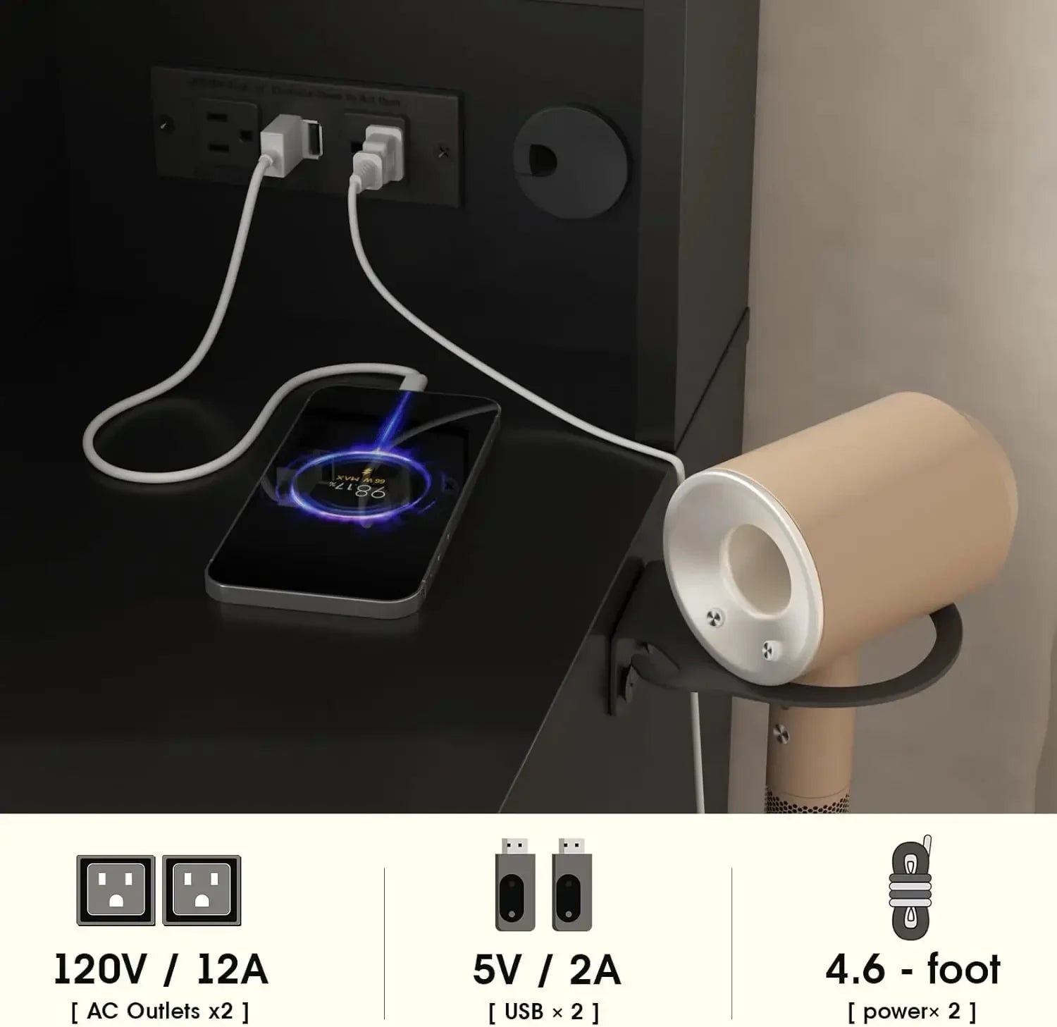 - Built-in Charging Station: Never worry about low battery while getting ready! Equipped with 2 standard plug sockets and USB ports for your convenience.