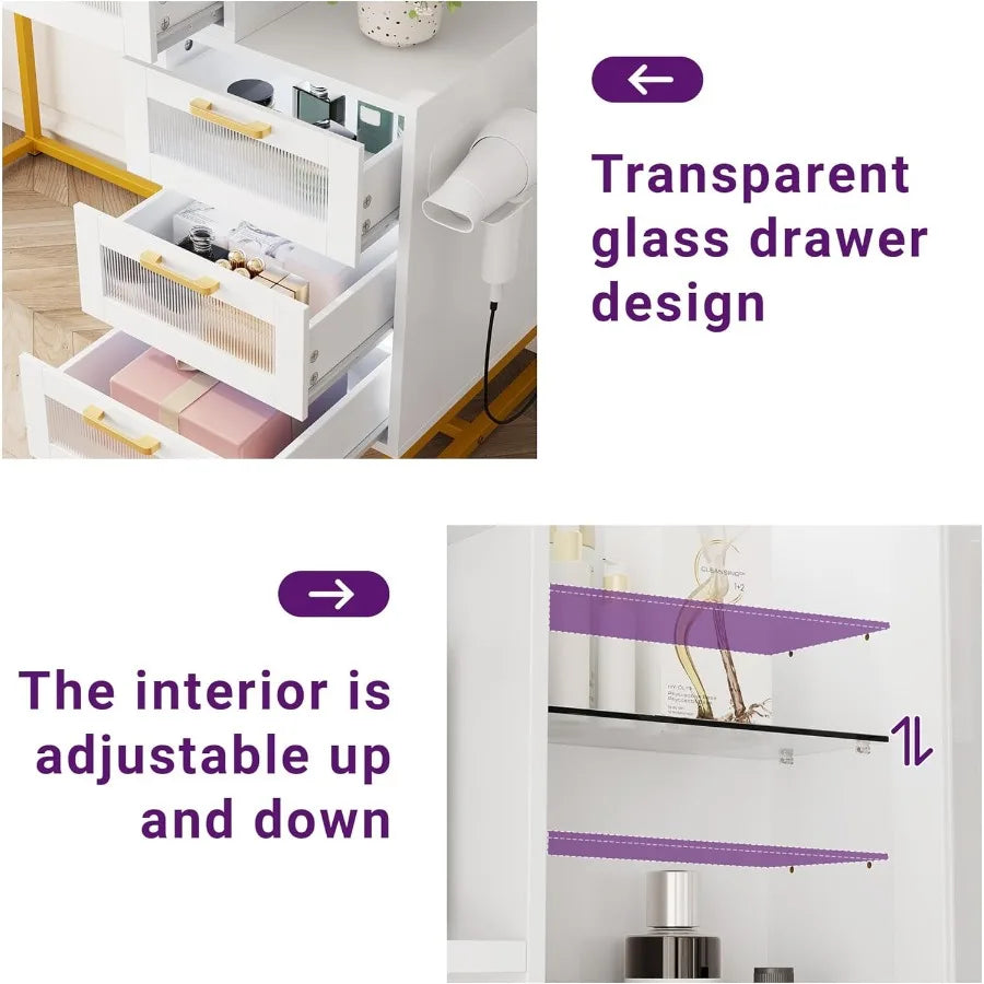 - Ample Storage: Features 5 spacious drawers and cabinets for all your makeup and beauty essentials.