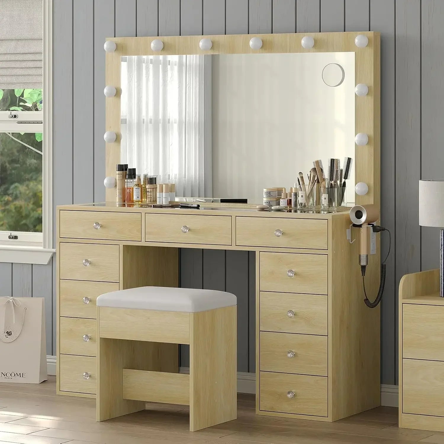 Ljustra Vanity Desk with LED Lights Makeup Table 11 Drawers Mirror Power Outlet