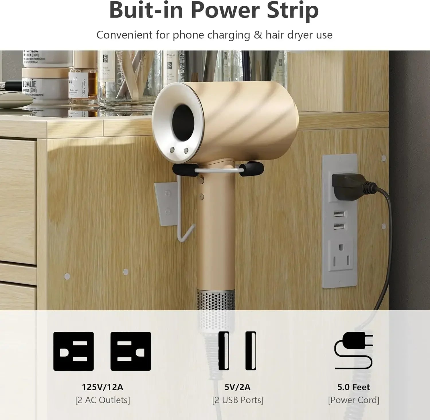 - Integrated Charging Station: Stay connected with 2 standard plug sockets and 2 USB ports for your hair tools and devices, making it easier than ever to get ready.