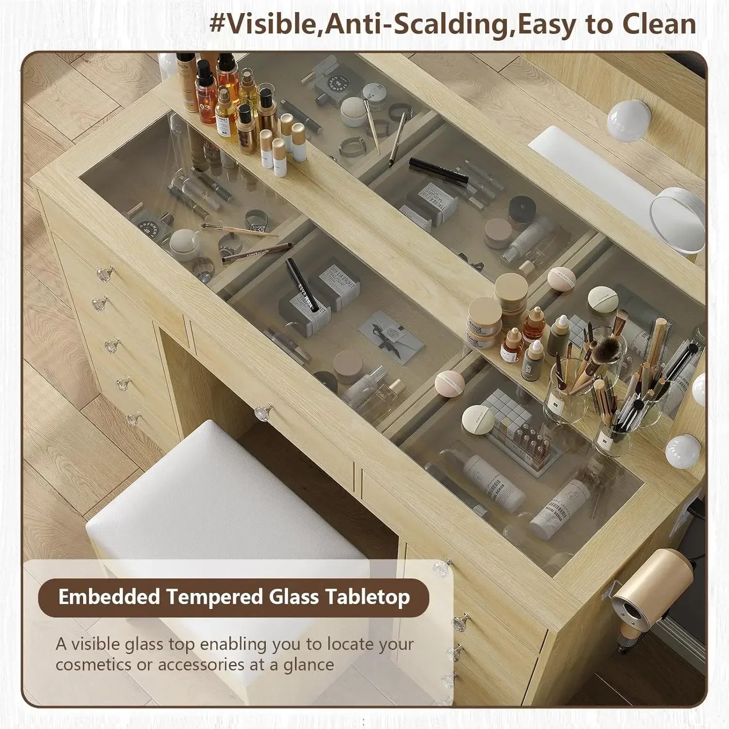 - Comfortable Seating: The included vanity chair features premium foam cushioning for a comfortable makeup experience, easily stored under the desk.