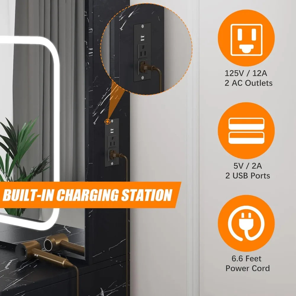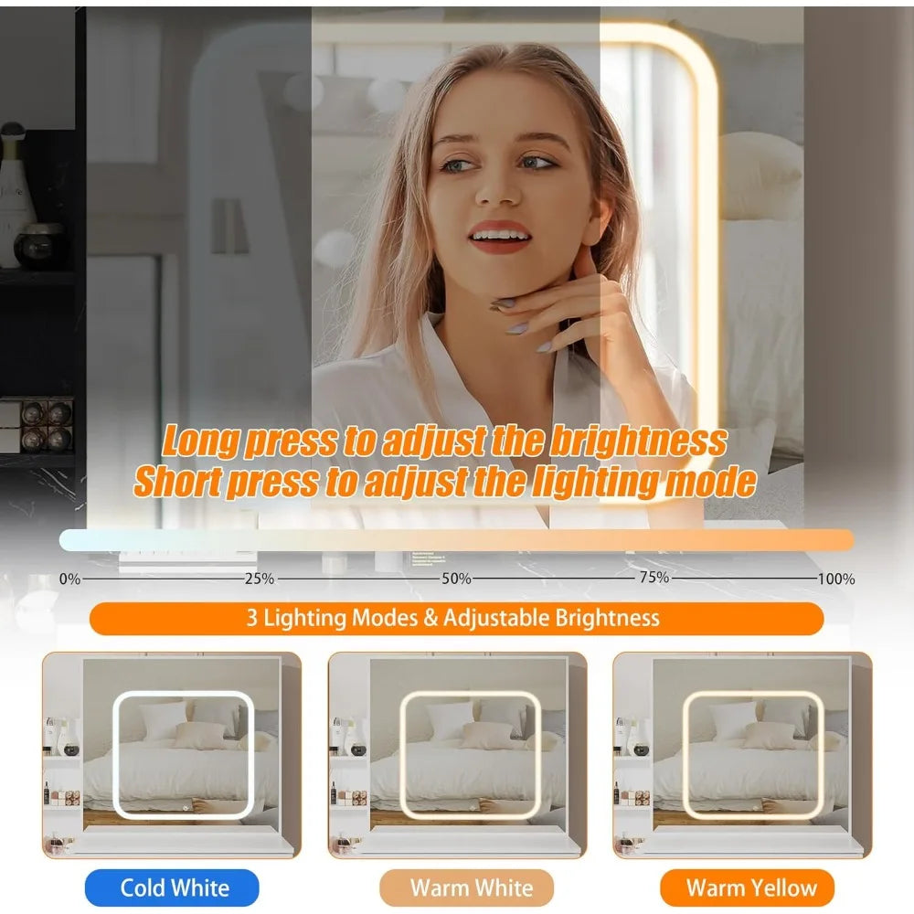 Vanity Desk with LED Mirror and Storage Makeup Dressing Table