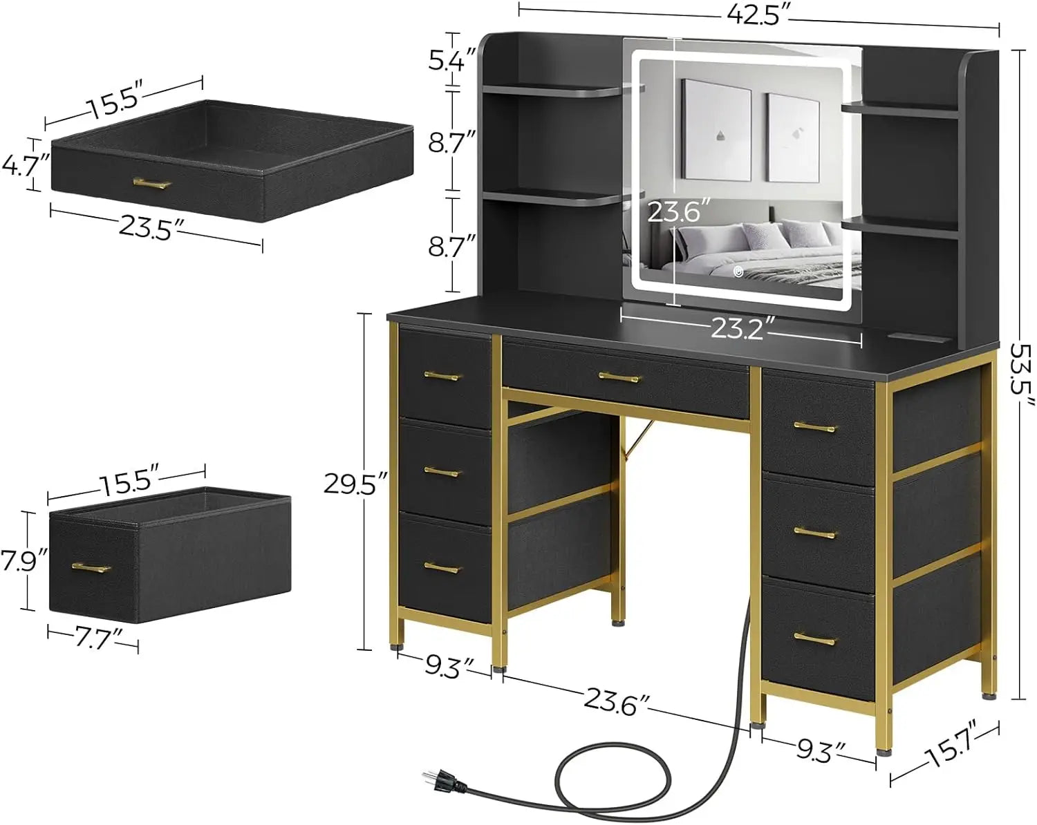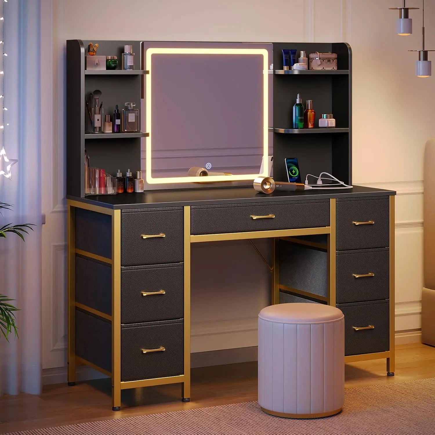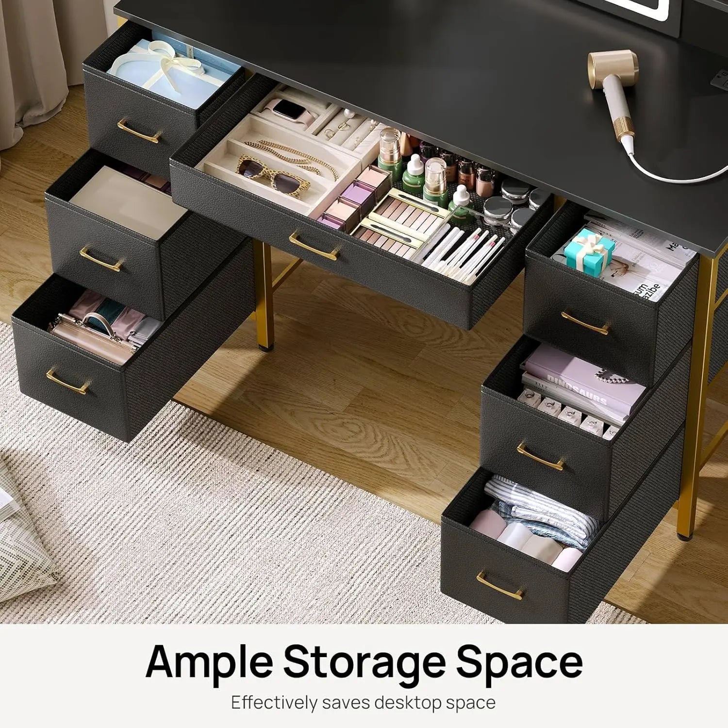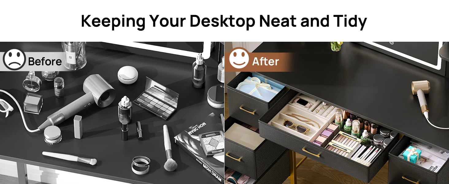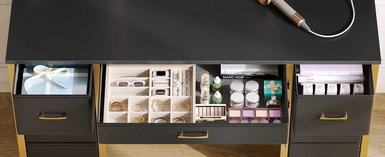 - Ample Storage: 7 fabric drawers and 6 storage shelves provide spacious organization for all your beauty essentials.
