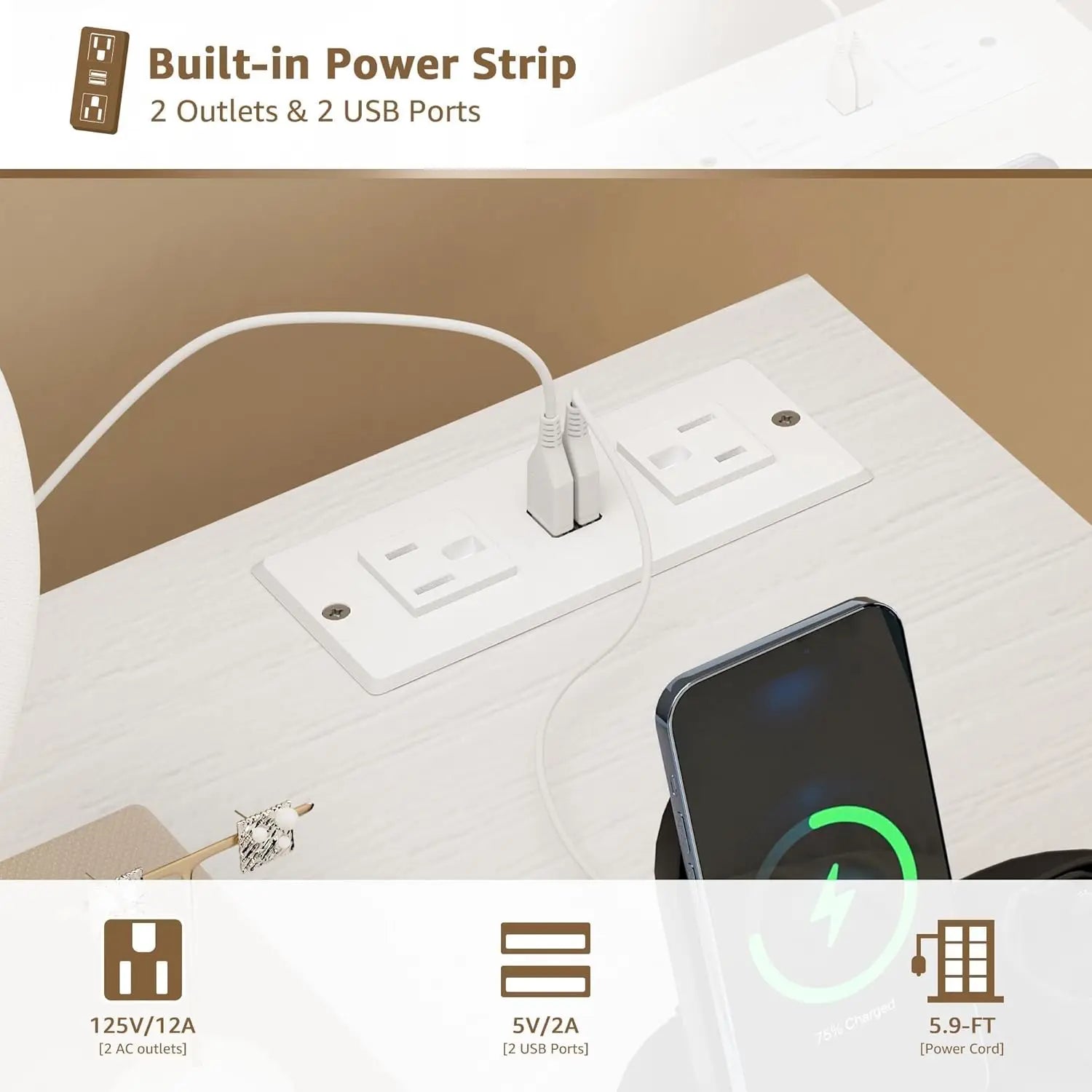 - Convenient Power Options: Never worry about charging your devices again. The built-in charging station includes 2 standard plug sockets and 2 USB ports for easy access.