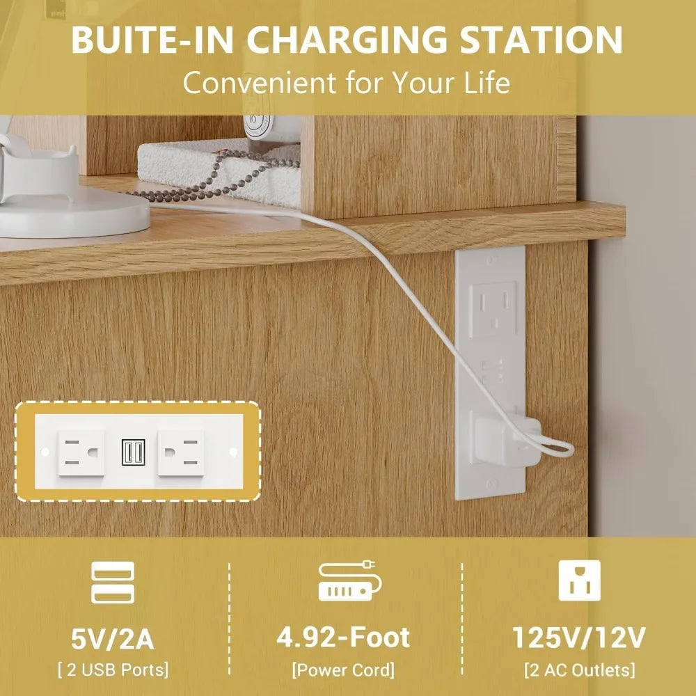 - Built-in Power Station: Stay connected with a built-in power strip featuring 2 standard plug sockets and 2 USB ports, making it easy to charge your devices while you get ready.
