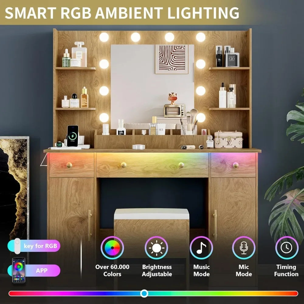 - Modern RGB Lighting: The vanity desk includes an RGB lighting system under the tabletop, controllable via an app, perfect for setting the mood for any occasion.