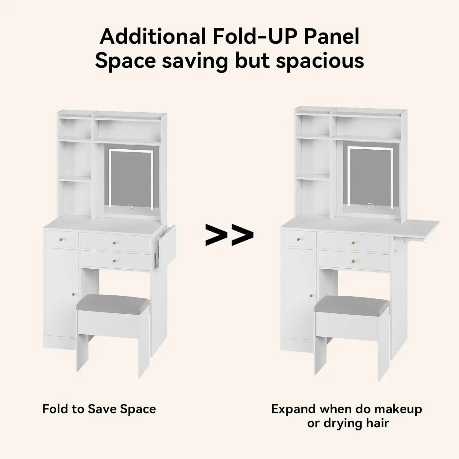 - Spacious Design: This vanity desk includes a foldable side panel, providing ample space for all your makeup essentials, despite its compact size.