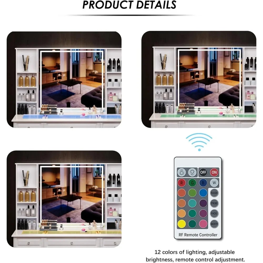 Ljustra Vanity Desk with Mirror and Lights 9 Drawers Dressing Table