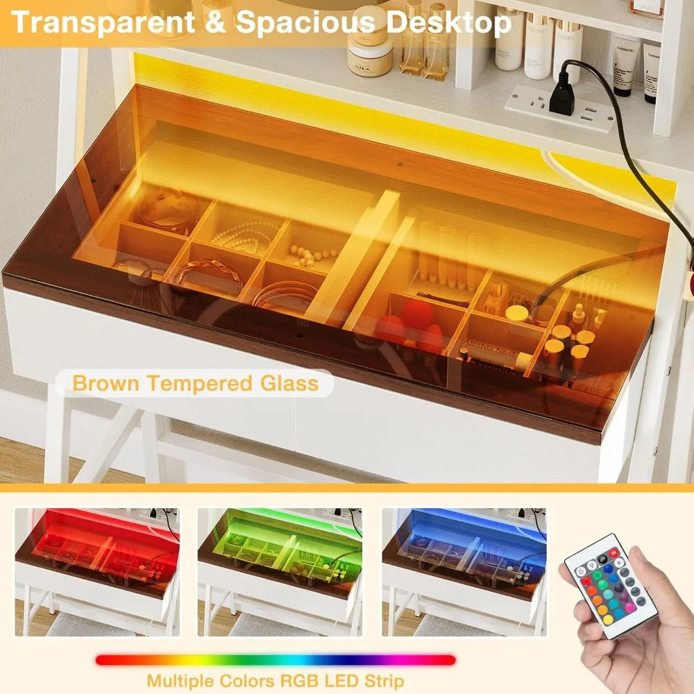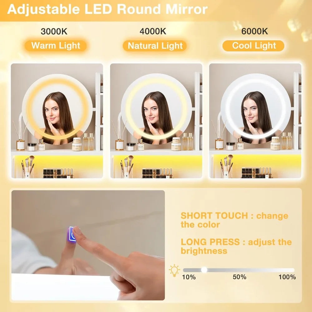Experience the perfect blend of style and functionality with the Ljustra Vanity Desk with Mirror and Lights. This elegantly designed makeup vanity is more than just a beauty station; it's a sanctuary for your daily grooming rituals.