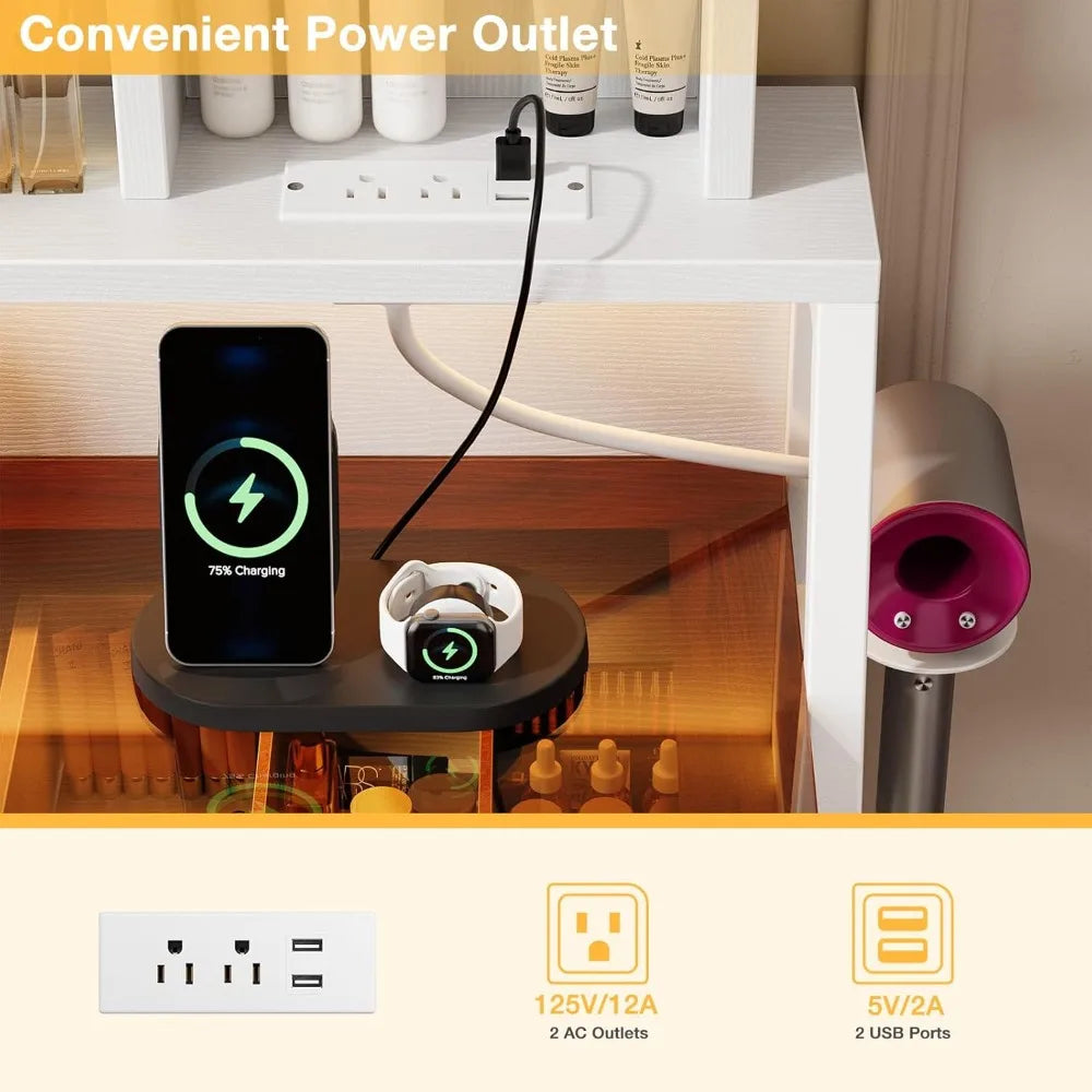 - Convenient Charging Station: Equipped with 2 USB ports and 2 AC outlets, effortlessly power your hair tools or charge your devices while you get ready.
