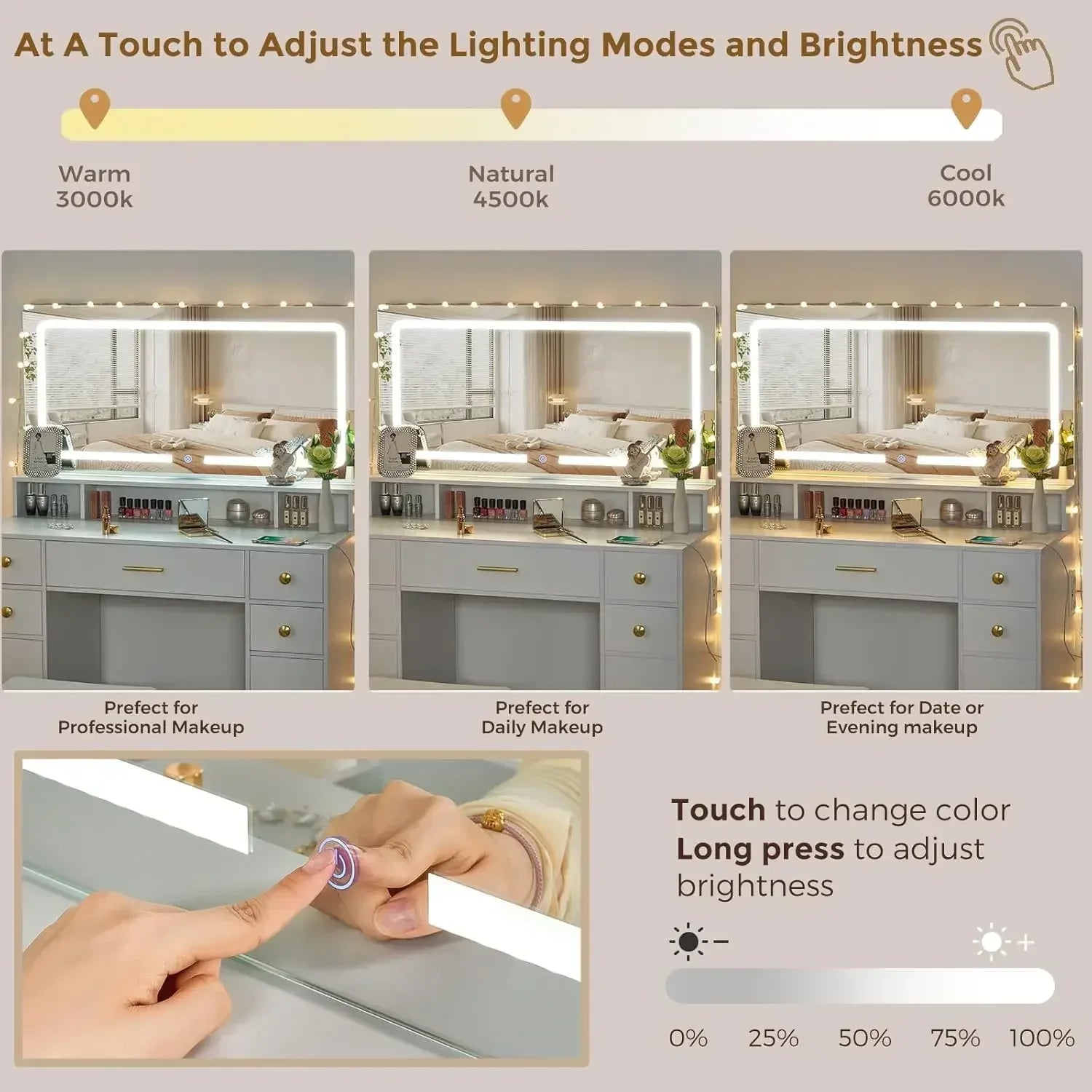 - Large LED Lighted Mirror: Enjoy adjustable brightness and three lighting modes (warm, natural, cool) to create the perfect ambiance for your makeup application.