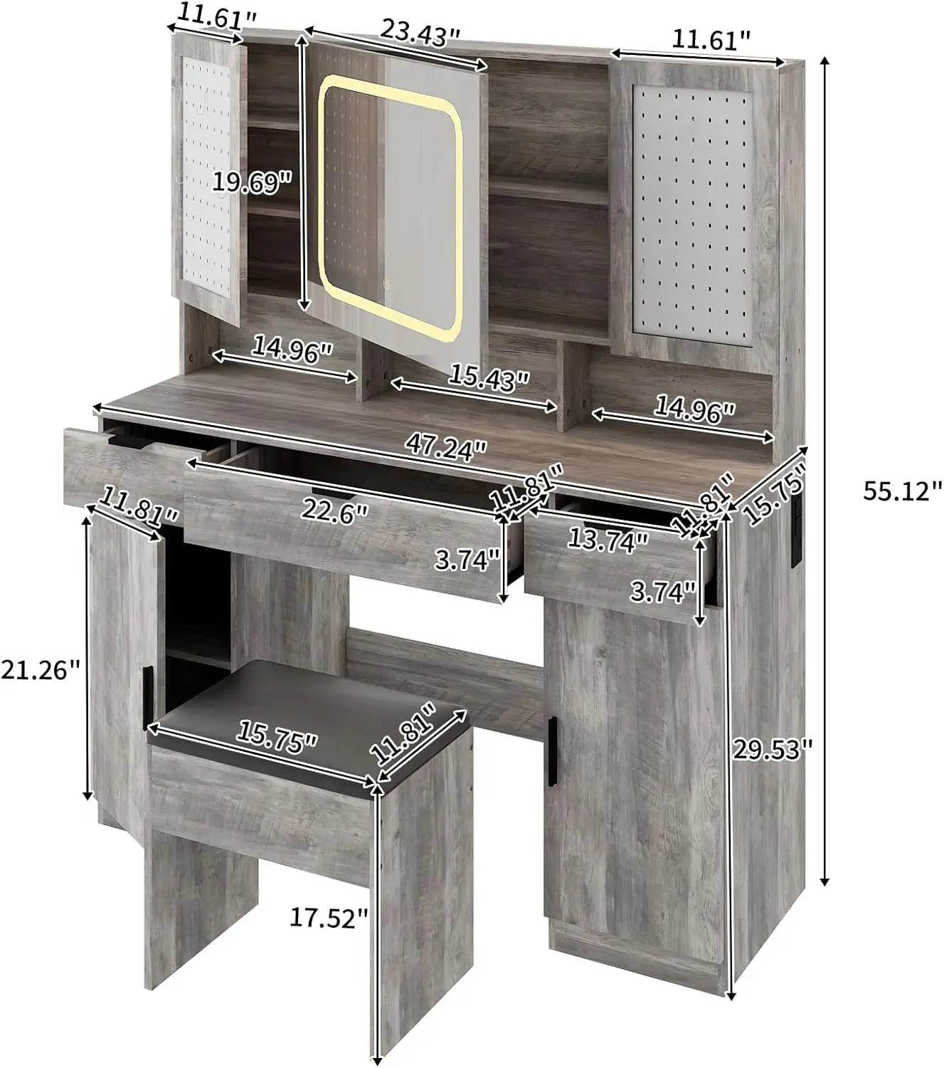 Large Vanity Table Set with LED Mirror Charging Station Pegboards Hooks