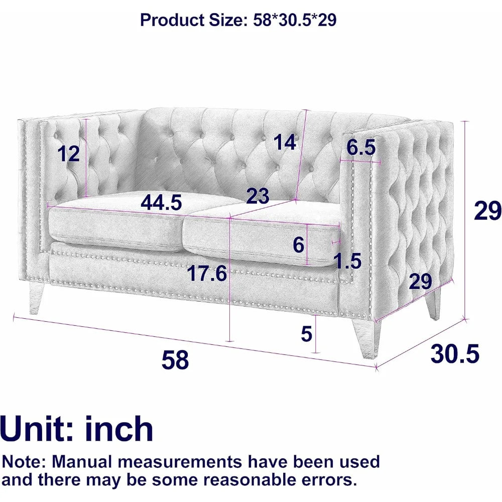 - Perfect for Small Spaces: With dimensions of 58" W x 30.5" D x 29" H, this loveseat is ideal for apartments, dorms, and studios.