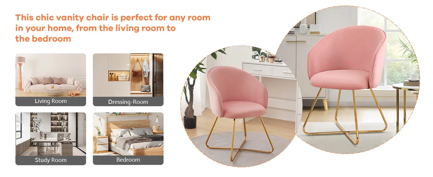 Elevate your beauty routine and living area with our stunning Velvet Vanity Chair. Designed for comfort and style, this modern accent chair is perfect for your vanity, bedroom, or living room.