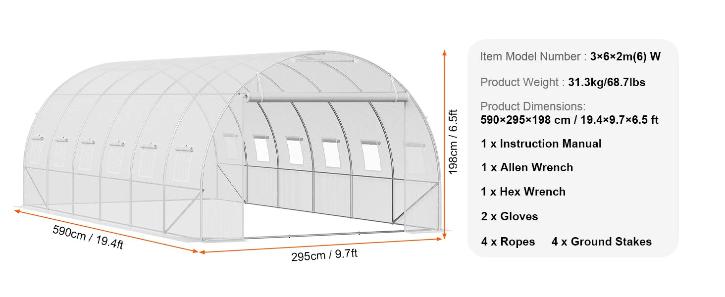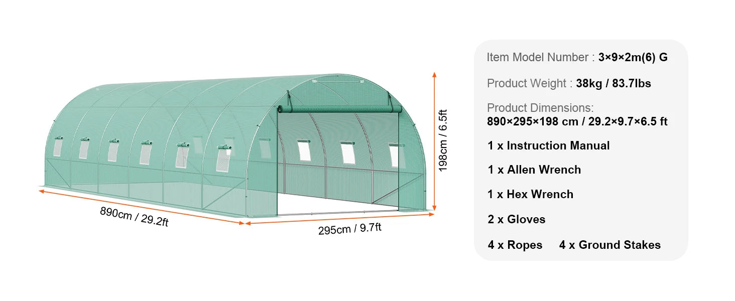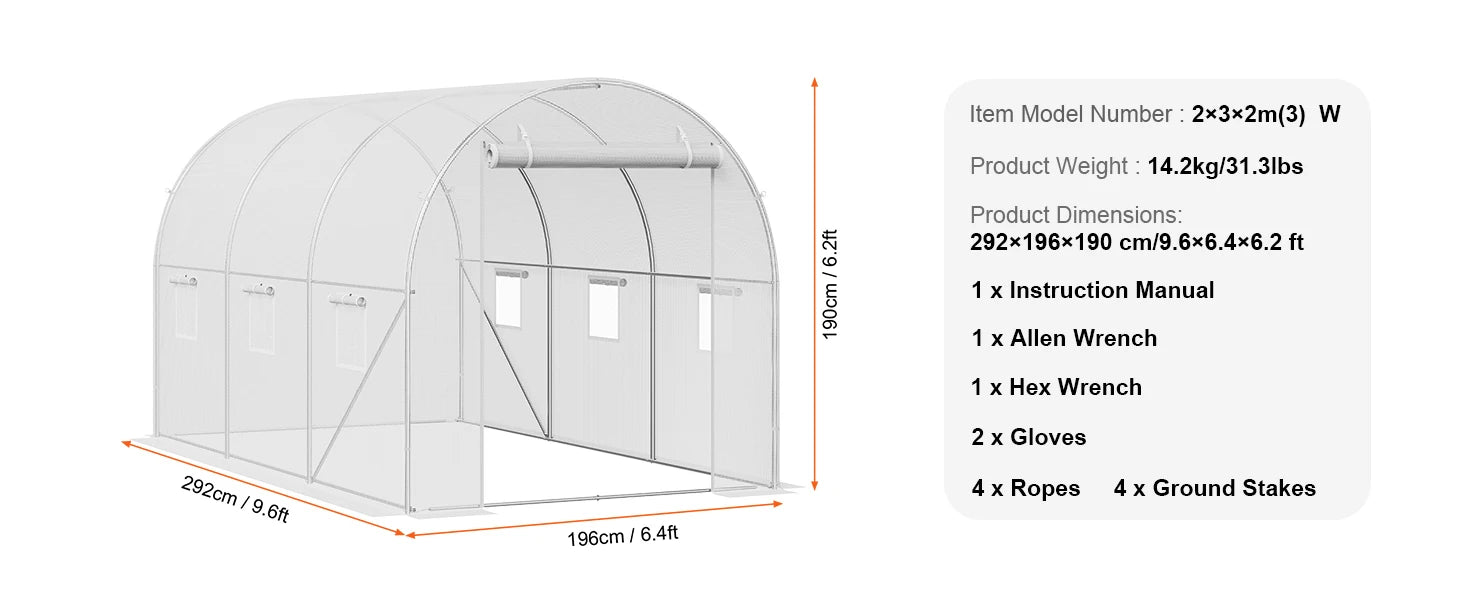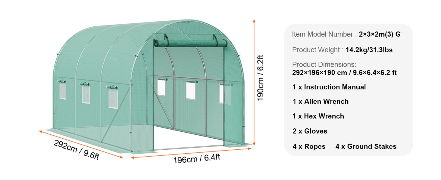 - Spacious Walk-In Design: With dimensions of 345x195x192 cm (11.32x6.40x6.30 ft), you have ample space for various plants and easy access for maintenance.