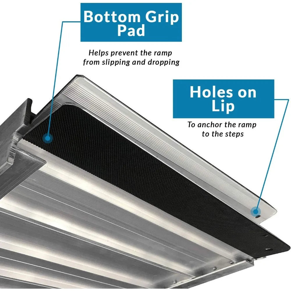- Safety First: Equipped with safety pins and a unique bottom grip, ensuring the ramp stays secure during use.