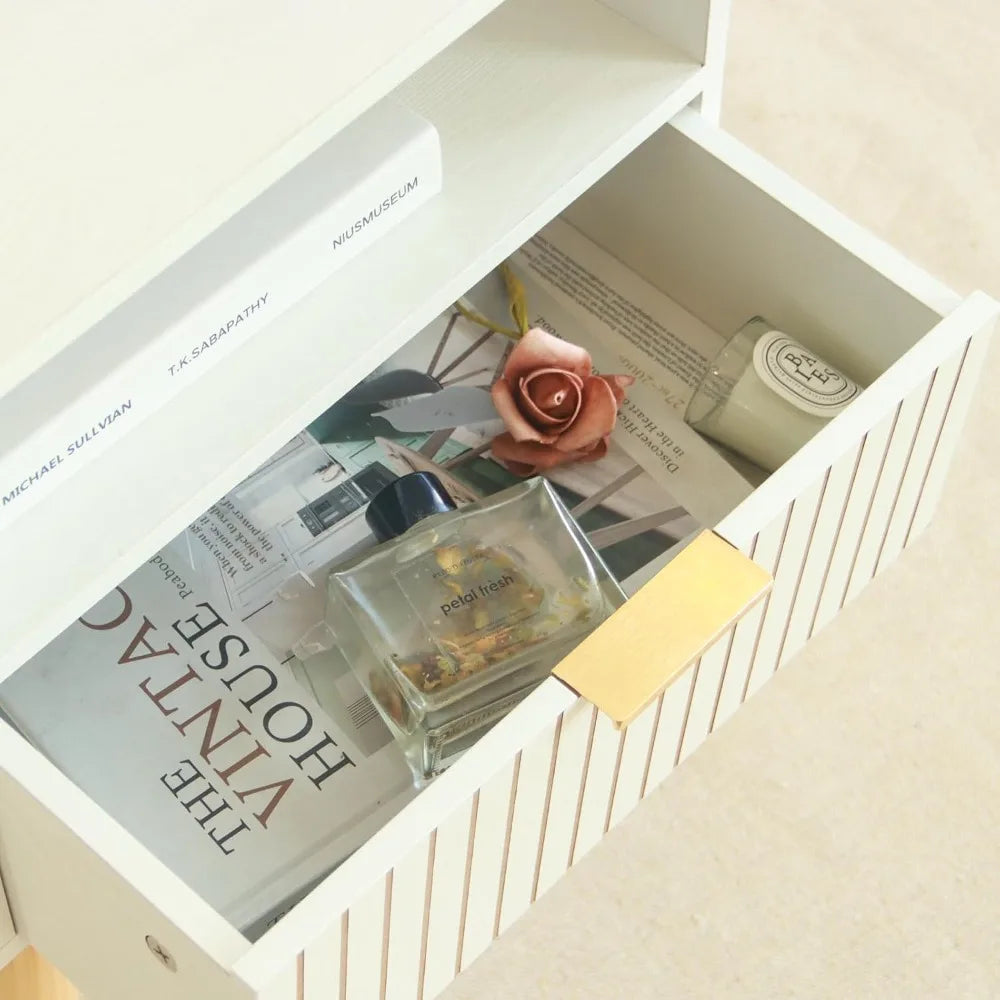 - Modern Design: The elegant square tabletop and fluted design drawer complement any home decor, making it ideal for living rooms, bedrooms, hallways, and offices.