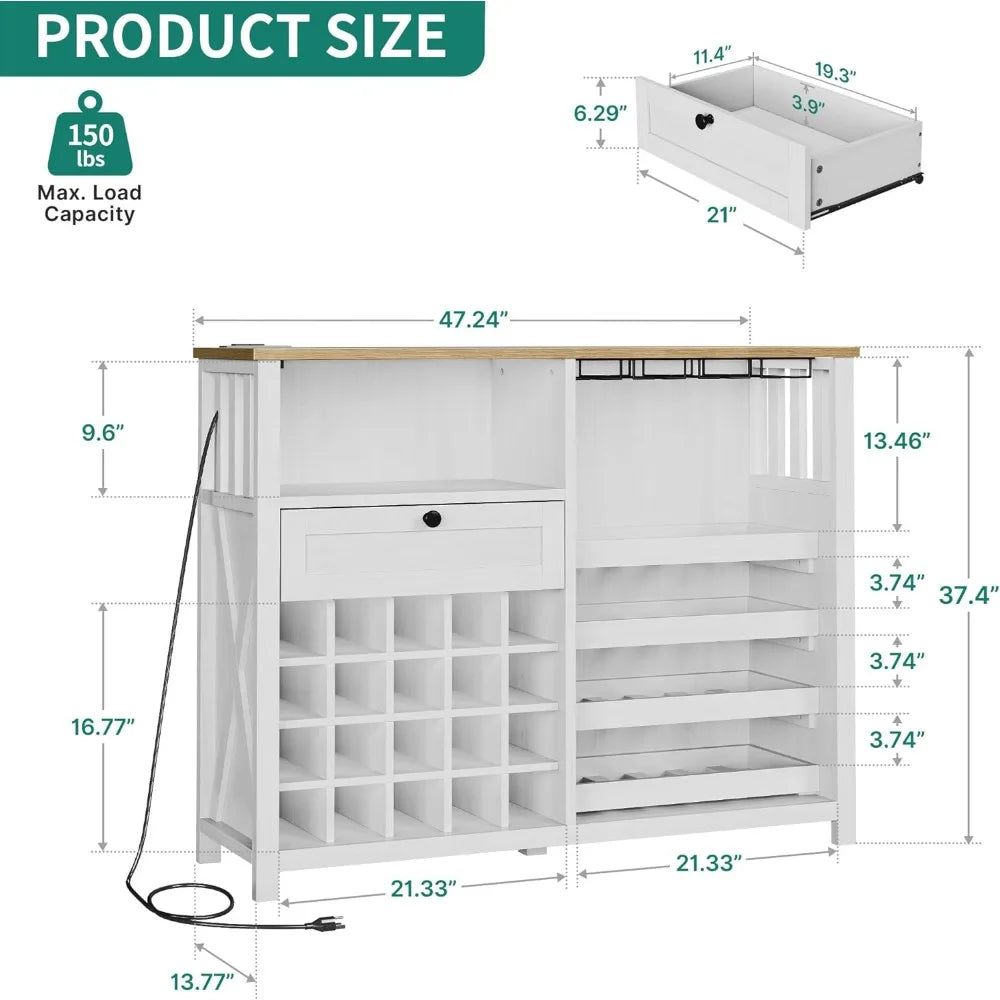 - Ample Storage: Holds up to 44 wine bottles, with a spacious tabletop and drawer for accessories.