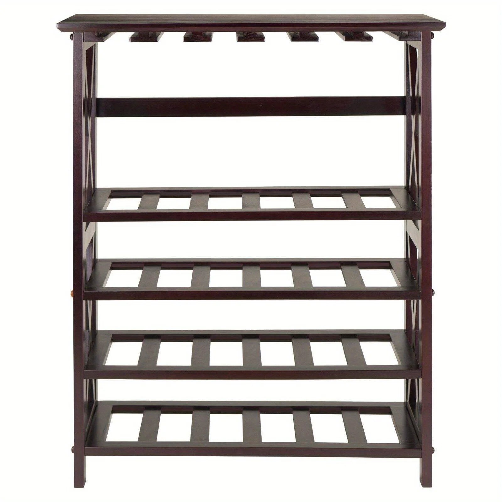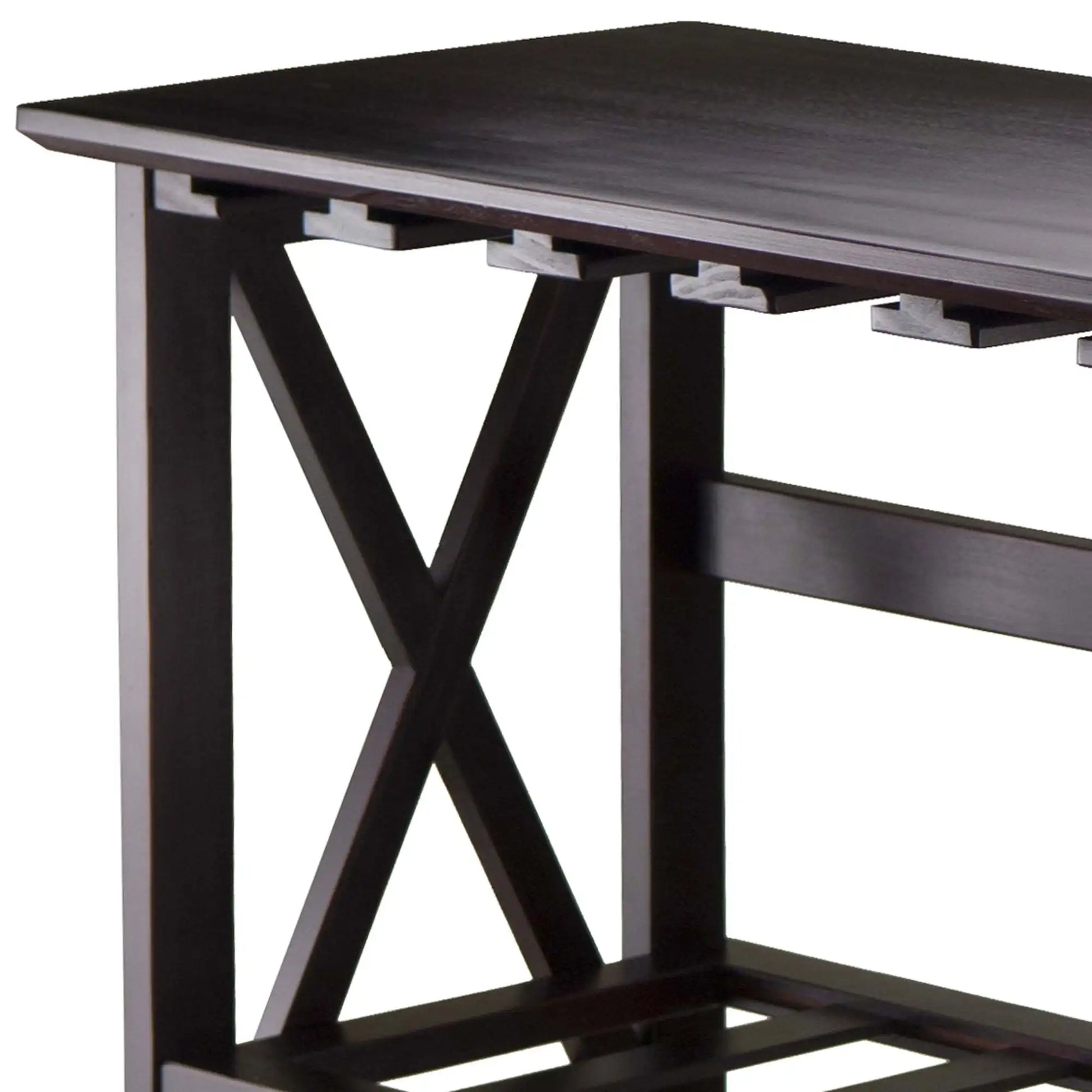 Espresso Wine Rack Solid Wood Storage Holds 24 Bottles and Glasses
