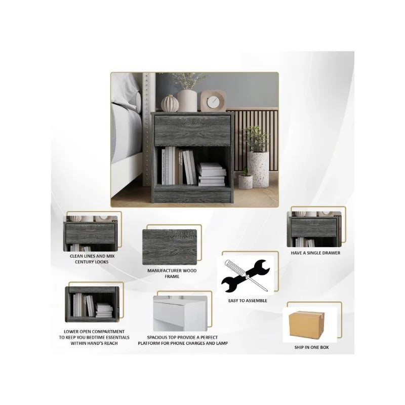 - Functional Storage: Equipped with a pull-out drawer and a lower open compartment for easy access to your bedtime essentials.