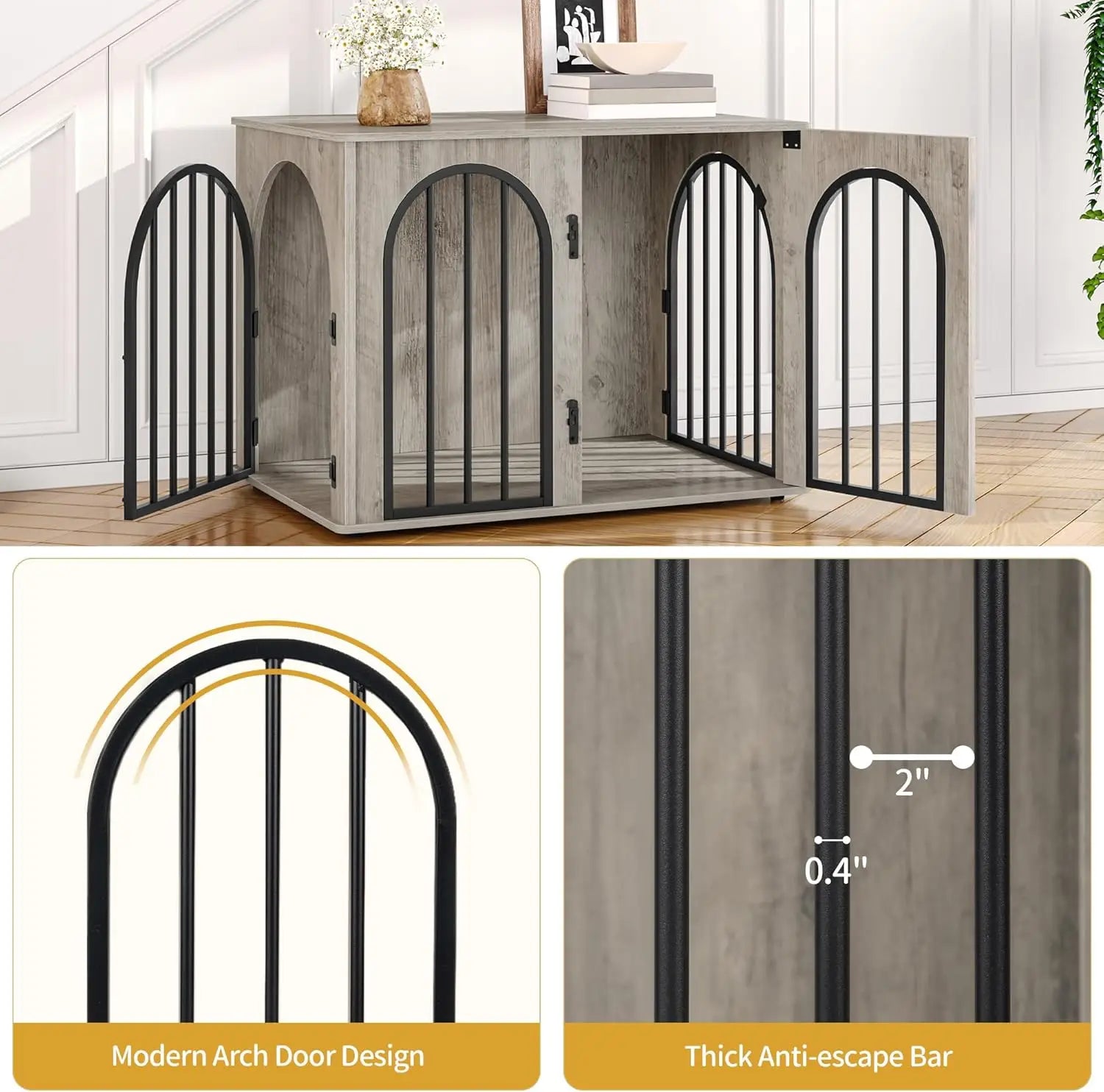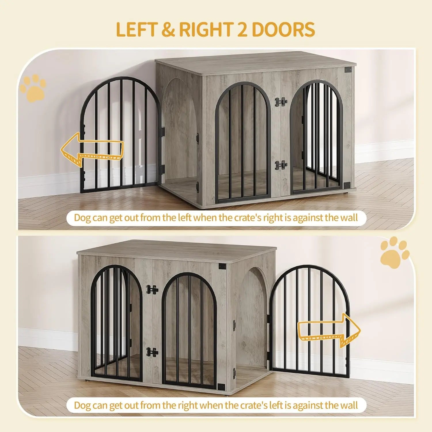- Anti-Chew & Anti-Escape: Made with heavy-duty iron pipes and thickened engineered wood, this crate features dual locks for enhanced security, keeping your furry friend safe and sound.