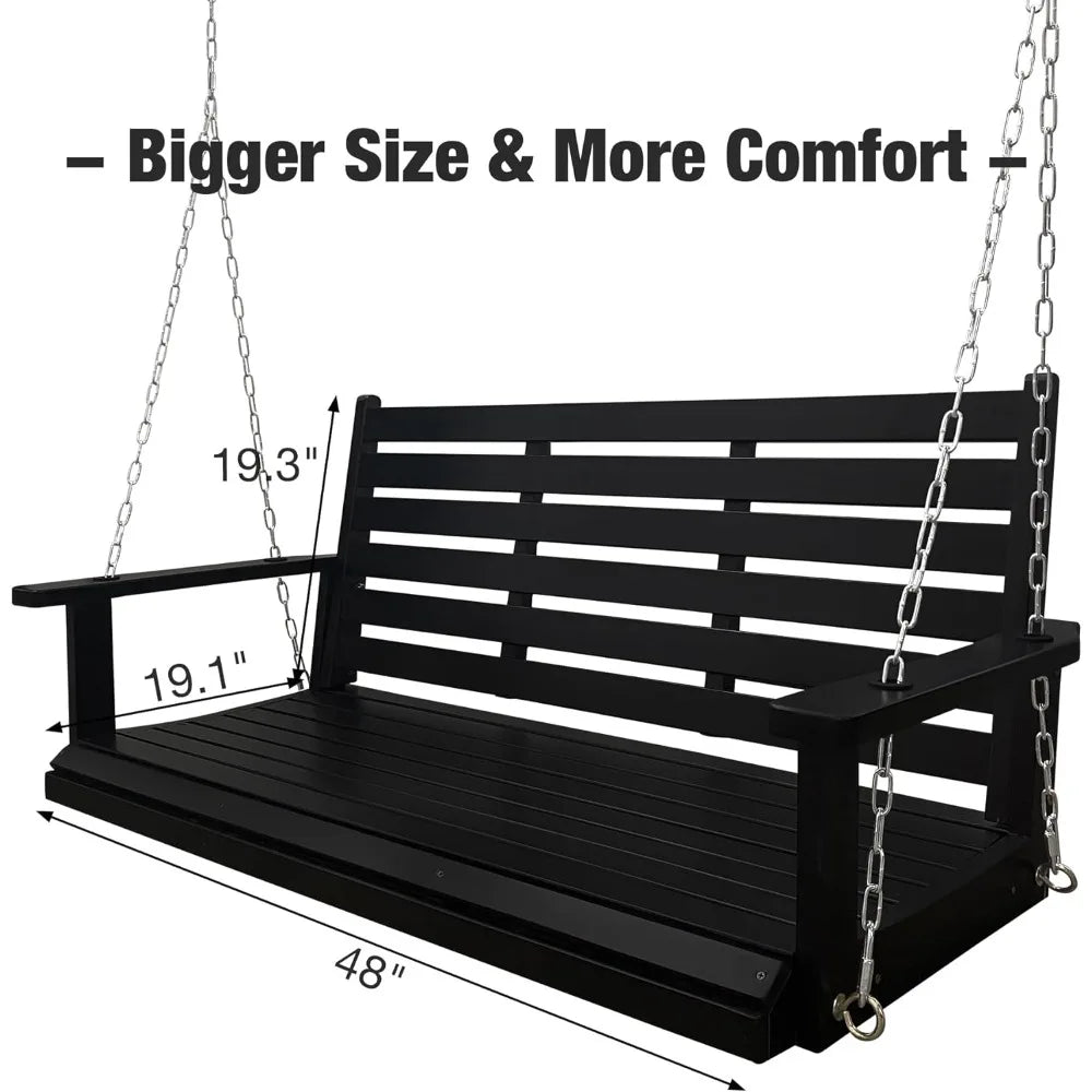 Wooden Porch Swing Heavy Duty Ergonomic Bench for Outdoor Patio 800 LBS
