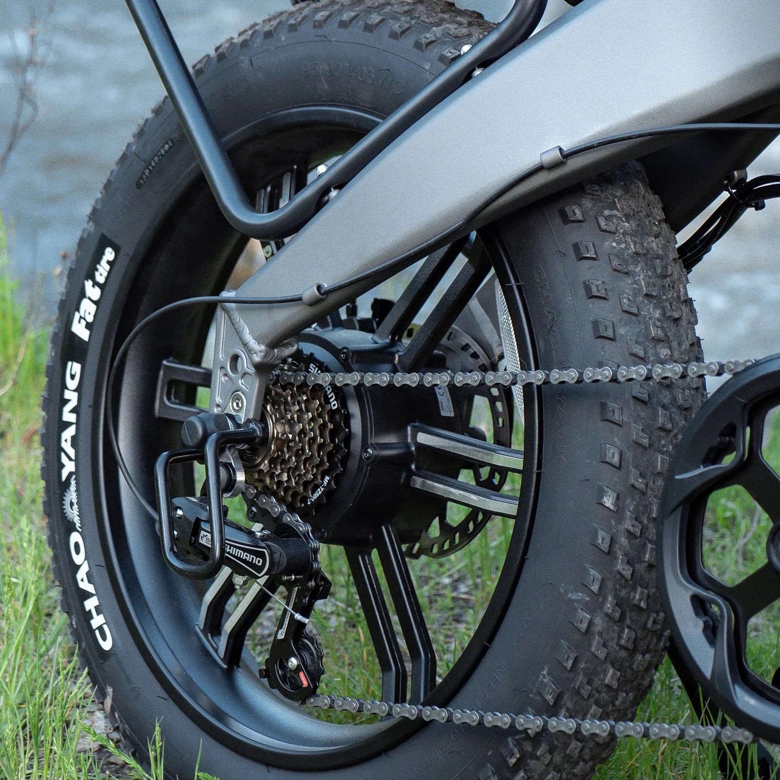 - Fat Tires: 20” x 4.0” tires provide excellent traction and stability on all terrains.