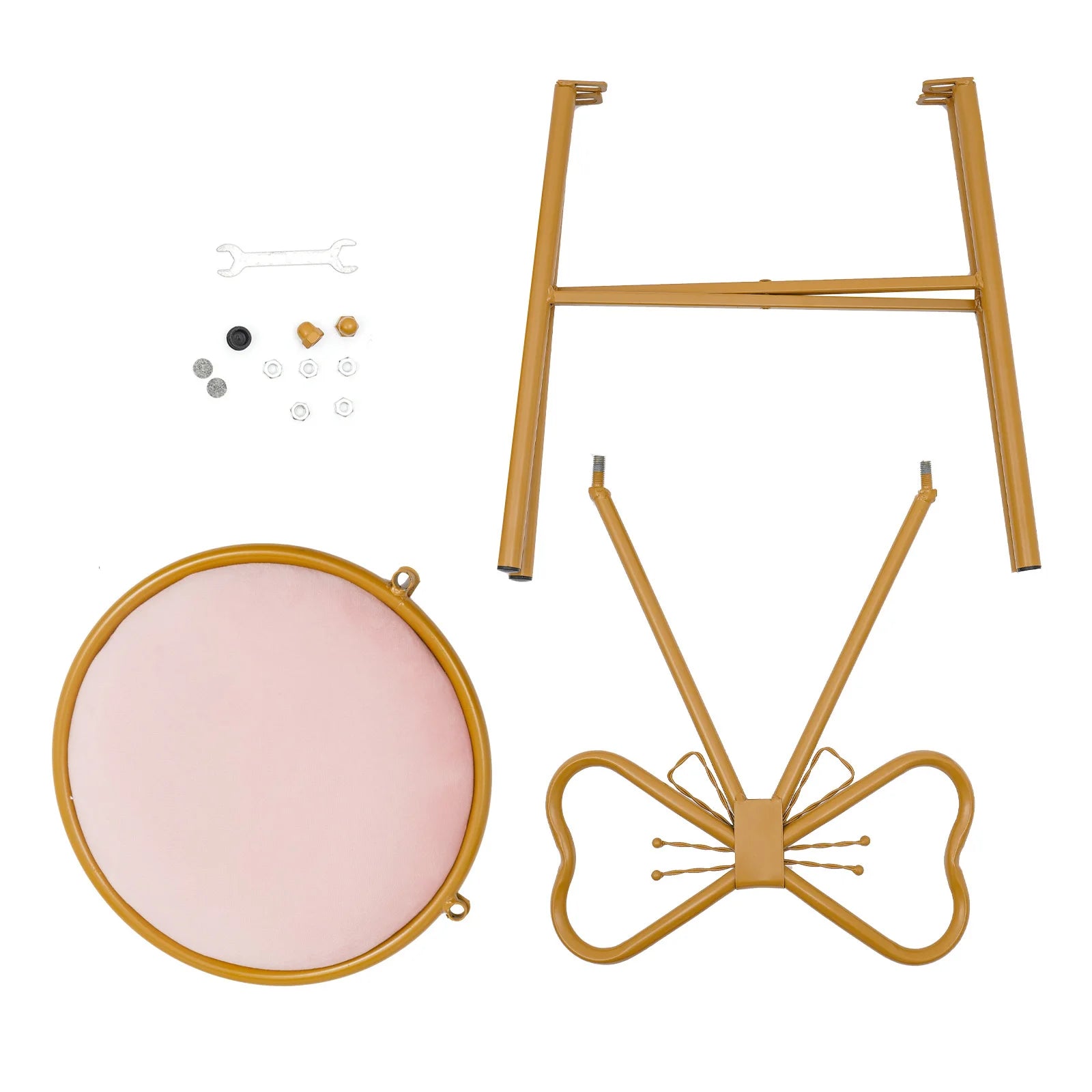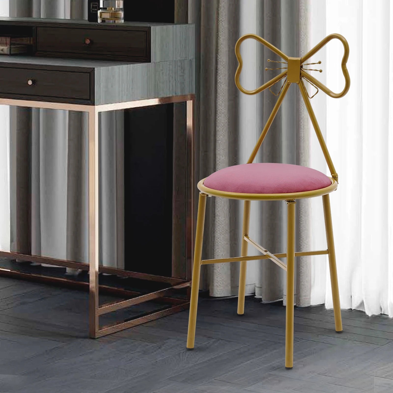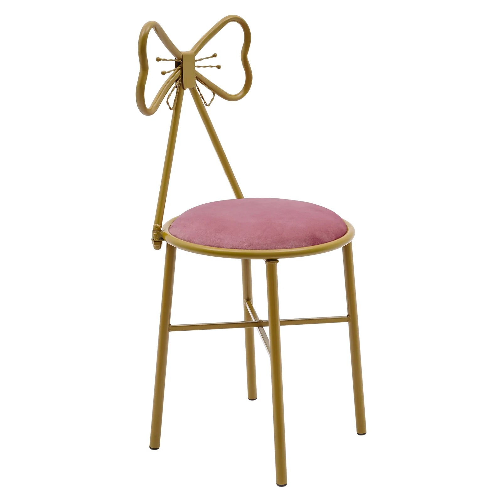 - Stylish Appearance: The beautiful deep pink cushion and gold iron frame combined with a unique butterfly backrest create a playful yet elegant look.