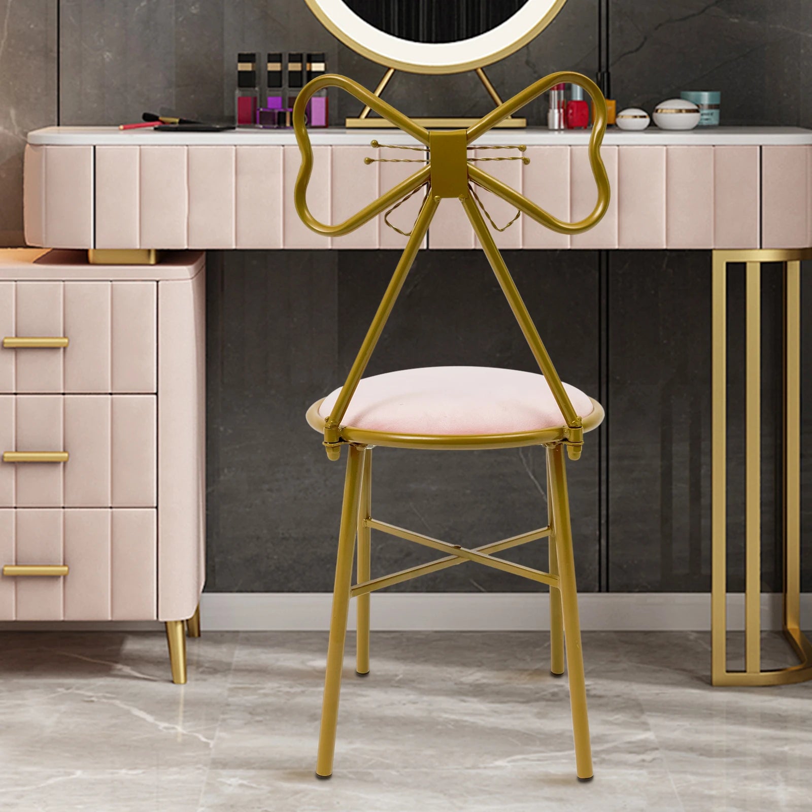 Luxury Minimalist Makeup Vanity Stool Butterfly Backrest Chair Velvet