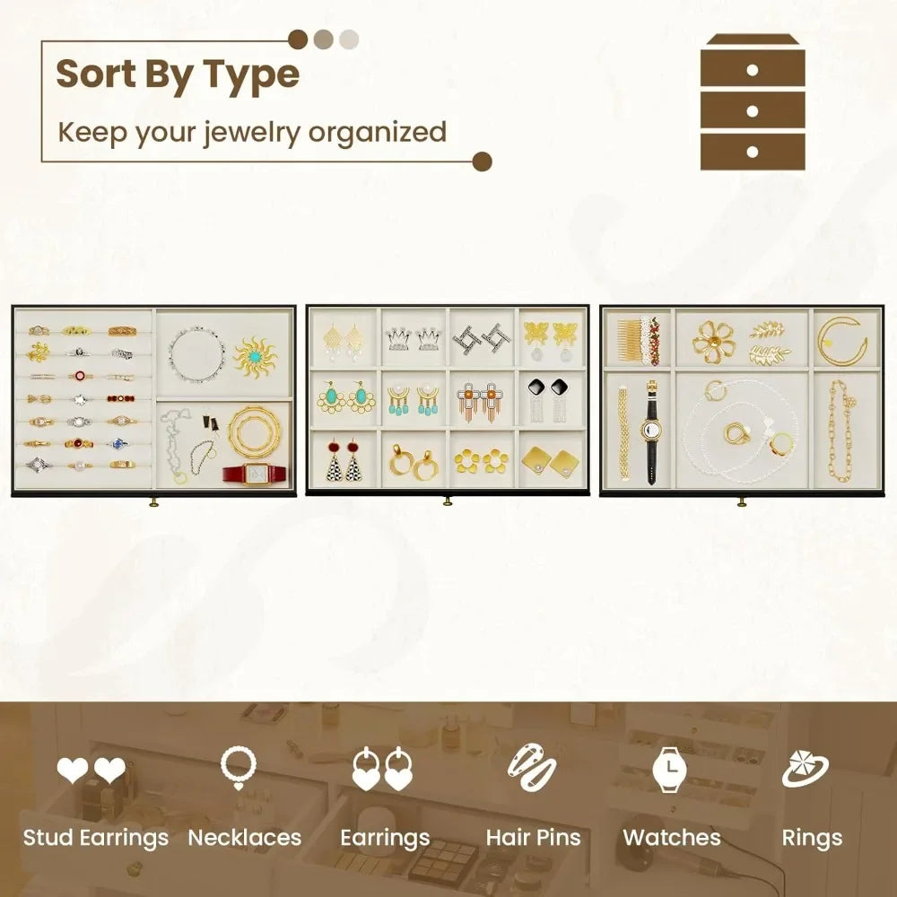 - Jewelry Organizer: This vanity desk includes a three-layer jewelry case, perfect for organizing rings, earrings, bracelets, necklaces, and more.