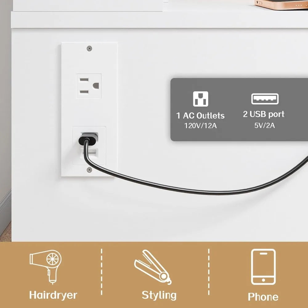 - Convenient Charging Station: Stay connected with a built-in charging station featuring two standard outlets, two USB ports, and a Type-C port, making it easy to charge your devices and power beauty tools.