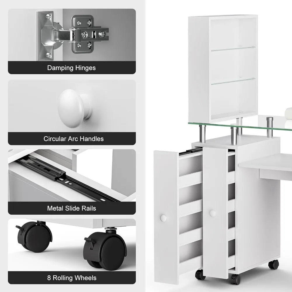 Ljustra Manicure Table Nail Desk Acetone Resistant with Glass Top