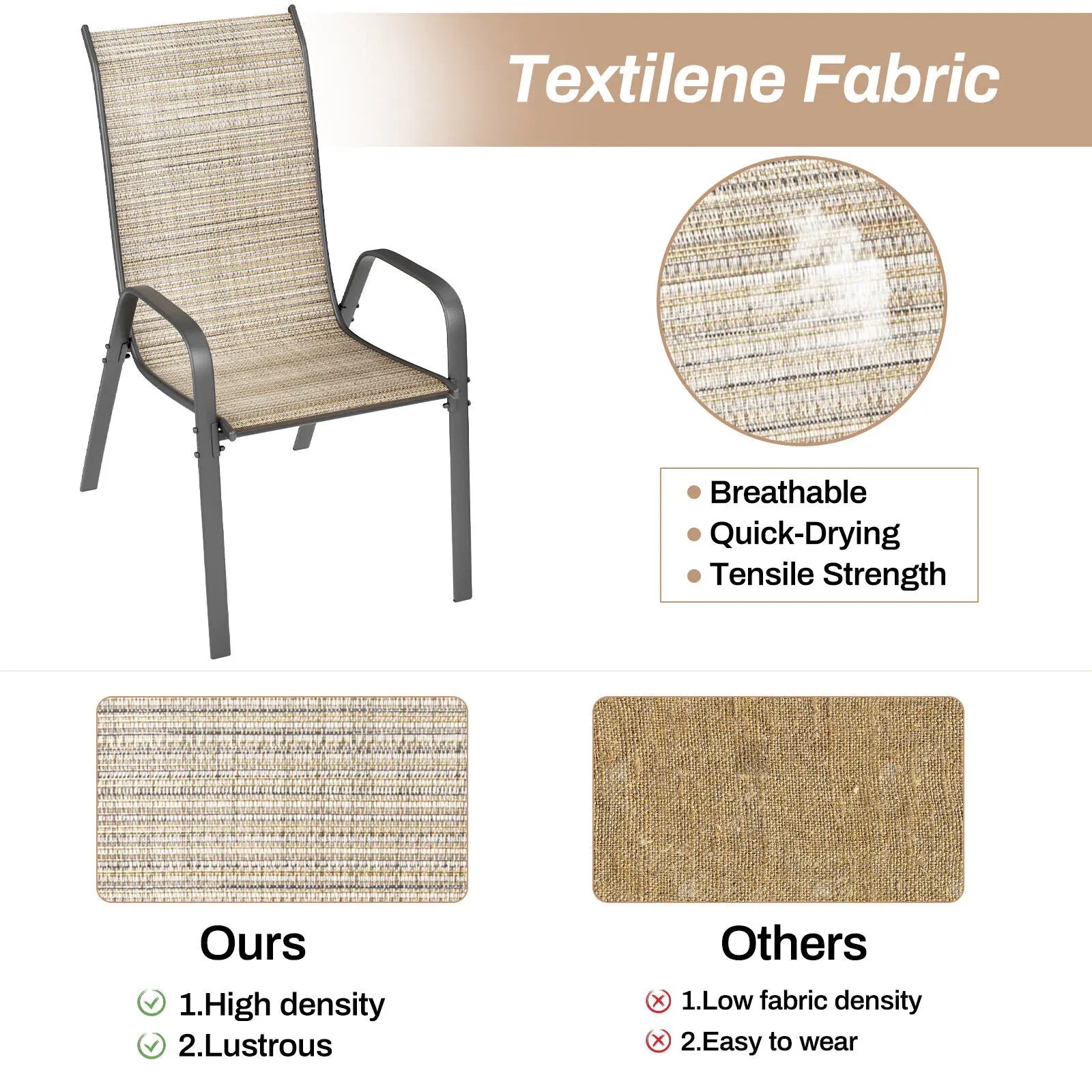 Enhance your patio or garden with our Metal Outdoor Chair Set. Designed for comfort and durability, these stackable chairs are perfect for dining, relaxing, or entertaining guests. Made with a robust steel-iron frame and high-quality Teslin fabric, they offer both style and practicality.