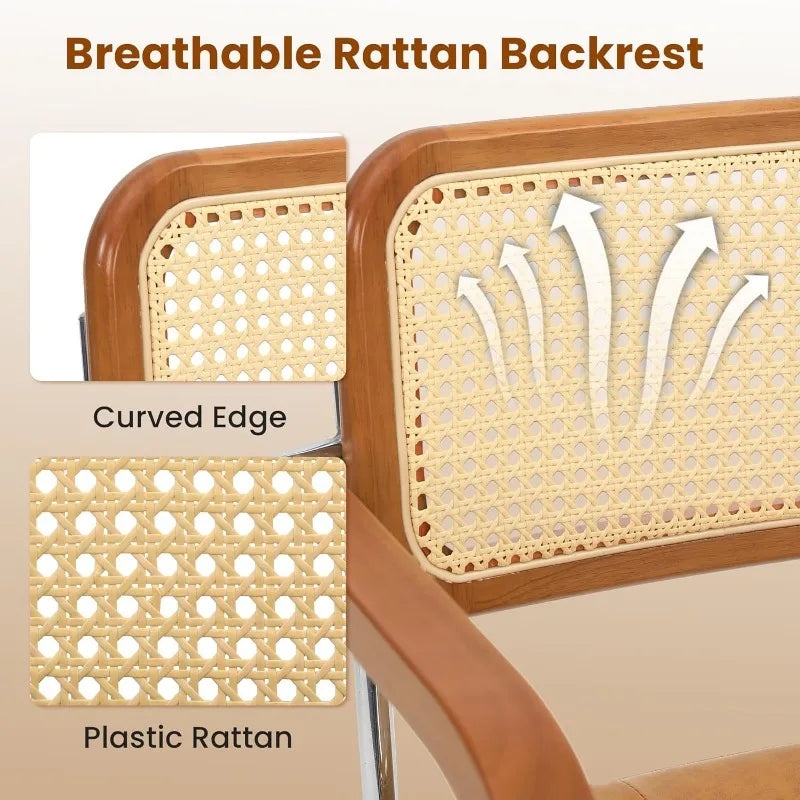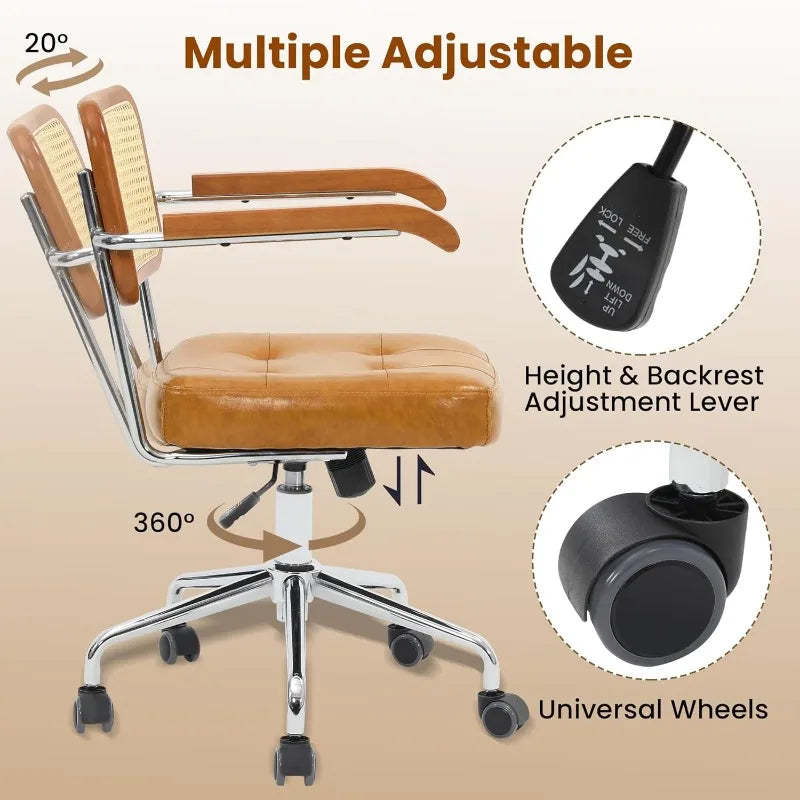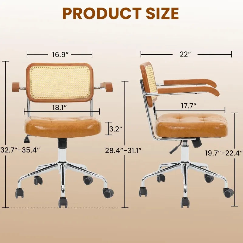 The Mid Century Modern Tilting Rattan Back Desk Chair is the perfect blend of style and functionality. Designed for comfort and versatility, this chair will enhance your workspace while providing maximum comfort.