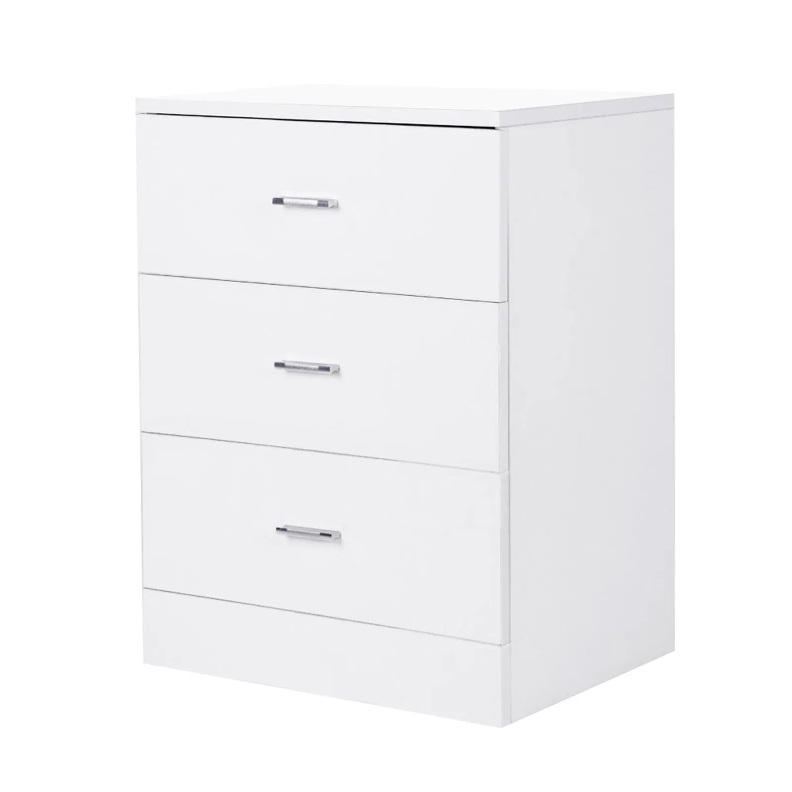 Modern 3-Drawer Nightstand Glossy White MDF Bedside Table Furniture
