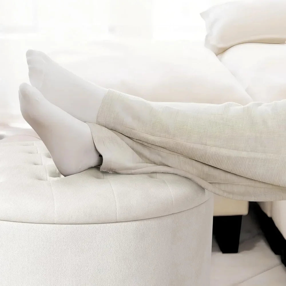 - Flip-Top Storage: Effortlessly flip up the lid to reveal a spacious compartment for blankets and essentials. The high-resilience foam ensures the lid retains its shape, leaving no impressions even under frequent use.